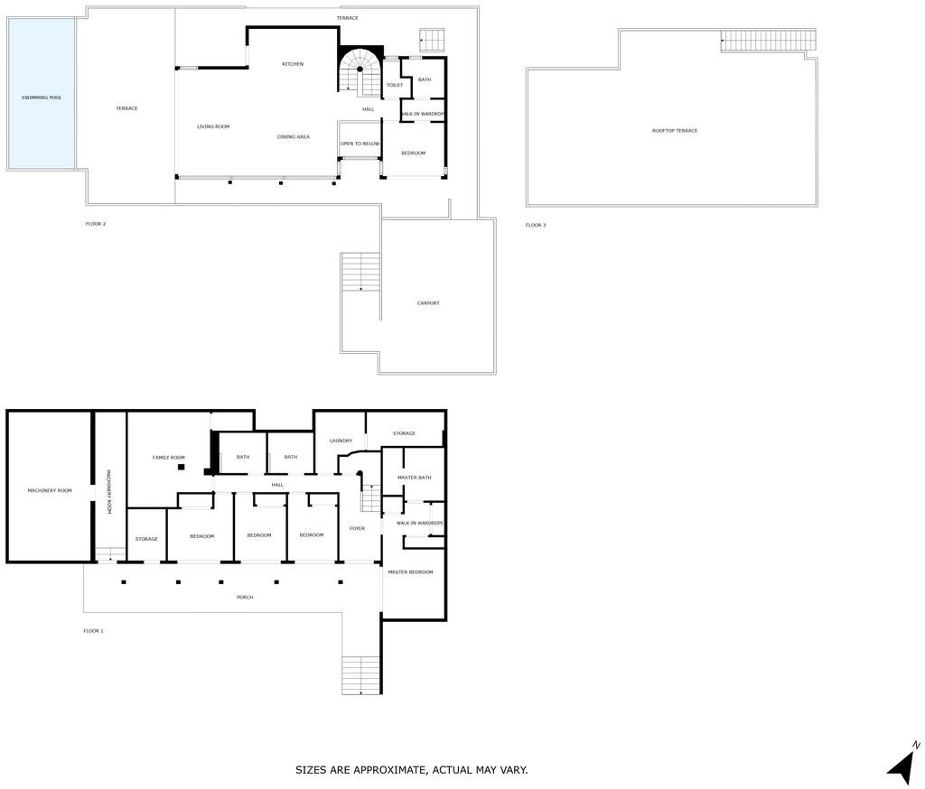 The villa is distributed over two floors plus a solarium, connected in a functional and harmonious layout. It can be accessed from both the ground and first floors for greater convenience. The ground floor hosts four cozy bedrooms, three full bathrooms, a TV room, laundry room, and a practical storage area. One of the bedrooms is en-suite and features a spacious walk-in wardrobe.