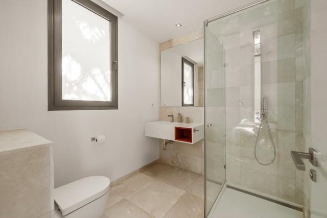 At the heart of the home is a modern kitchen outfitted with premium appliances, sleek cabinetry, and a large glass dining area framed by floor-to-ceiling windows. The seamless connection to the outdoor living spaces includes an impressive pool with a jacuzzi, Balinese-style sun loungers, and a covered dining terrace with a fireplace and barbecue setup - perfect for entertaining. What's best is the private pristine tennis court at the foot of the garden, ideal for residents to use all year round. This modern home epitomises contemporary luxury in a Mediterranean setting, offering an unparalleled blend of comfort, sophistication, and location.