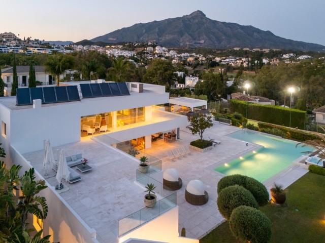 Introducing a stunning contemporary villa located in the prestigious neighbourhood of Nueva Andalucía’s Golf Valley. This exclusive 7-bedroom residence sits on a generous 2,548m² plot, offering unmatched privacy and panoramic views of Marbella’s iconic La Concha mountain and the Mediterranean coastline. Its prime location places it within close proximity to top golf courses, international schools, upscale restaurants, and the vibrant Puerto Banús marina, making it an exceptional investment and lifestyle choice.