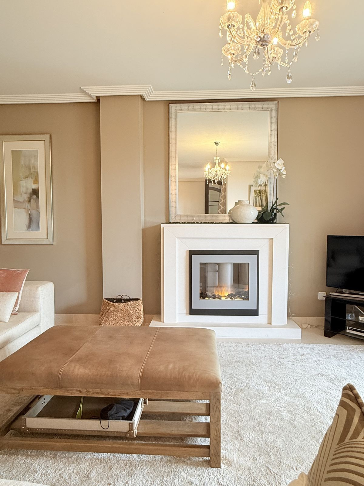 Upon entering, you'll find an expansive beautifully presented open-concept living and dining room featuring a large corner sofa, dining space for six, and an attractive feature fireplace. Two sets of double doors provide direct access to a private south-facing covered terrace—ideal for al fresco dining and outdoor entertaining—plus a generous corner garden offering extended outdoor living space.