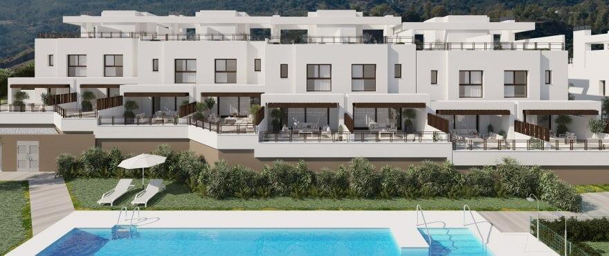 This is a new project in La Cala Resort formed by 21 spacious townhouses with panoramic views of the resort, the sea and Mijas valley. The homes are distributed over 3 levels in a private gated community with communal pool and gardens.