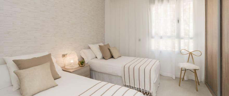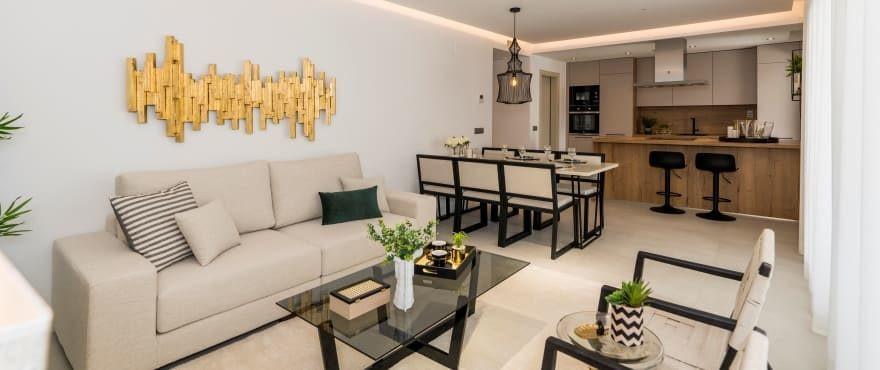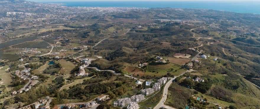 Private residential complex offering a total of 56 apartments with 2 or 3 bedrooms and 19 exclusive 3 bedroom penthouses and duplex distributed over 6 buildings, surrounded by spacious communal gardened areas and with a swimming pool. A stand-out feature of these bright and airy homes are the large terraces with impressive views over the valley of La Cala de Mijas, the golf course and the sea. The homes offer an interior design style based on outward-looking open spaces, with designer kitchens integrated into the living room which affords a sensation of greater brightness and space in the interior, as well as making the most of the impressive views. Their features are large format porcelain flooring tiles, fully equipped integrated kitchens, bathrooms with top quality fittings, LED lighting system, air conditioning and a solar energy water heating system. A parking space and storage room is included. At only 6 kms from the sea.
