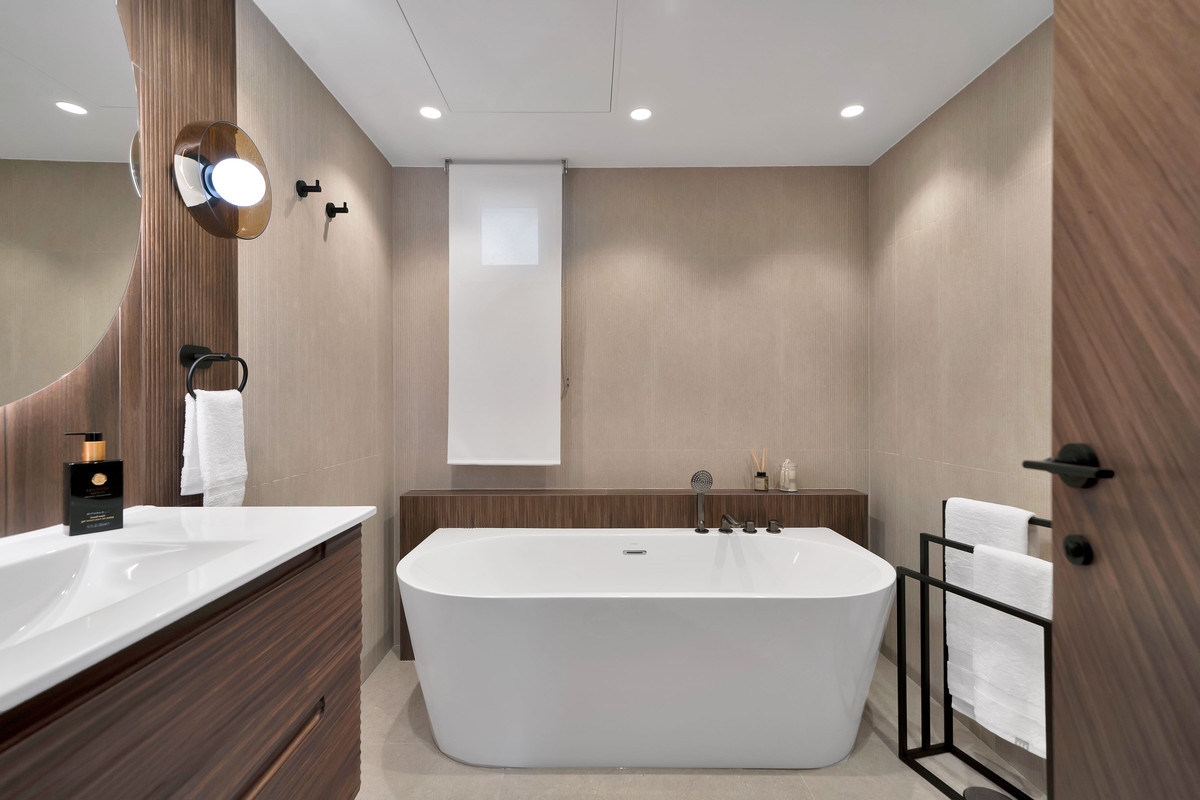 • The bathrooms, designed by José Manuel Ferrero, feature premium pieces from