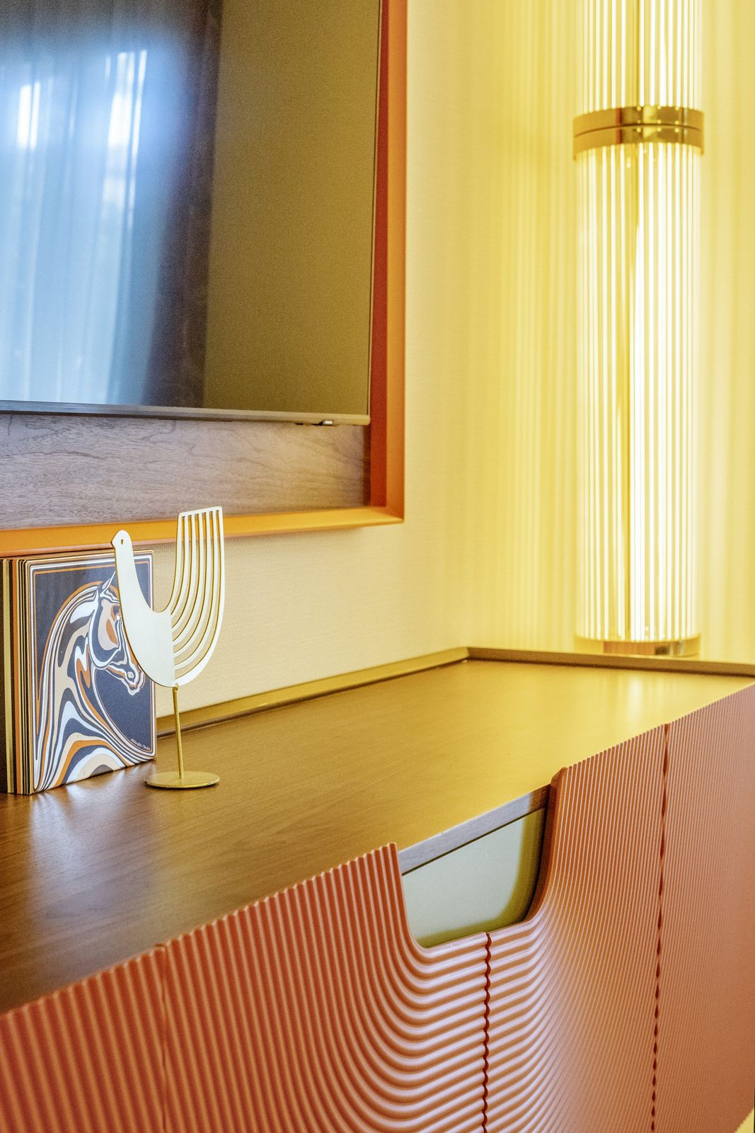 Recently renovated to the highest standard, the apartment showcases exquisite design and craftsmanship throughout. Every element has been carefully curated, with bespoke, made-to-measure furniture and premium finishes that create a sophisticated and warm ambiance. The open-plan living area features a fully fitted designer kitchen, integrated top-of-the-range appliances, and a stylish island dining space. The elegant lounge includes a functional fireplace, enhancing the inviting character of the home.