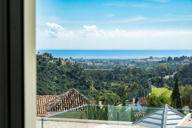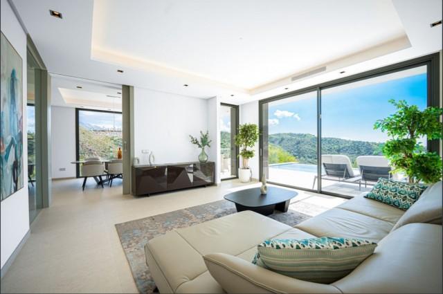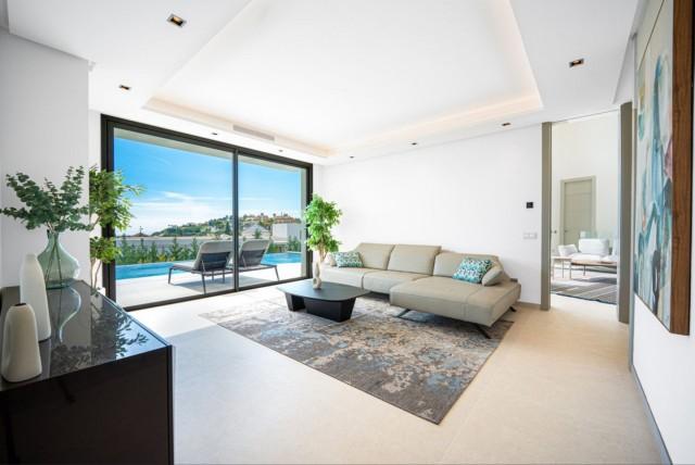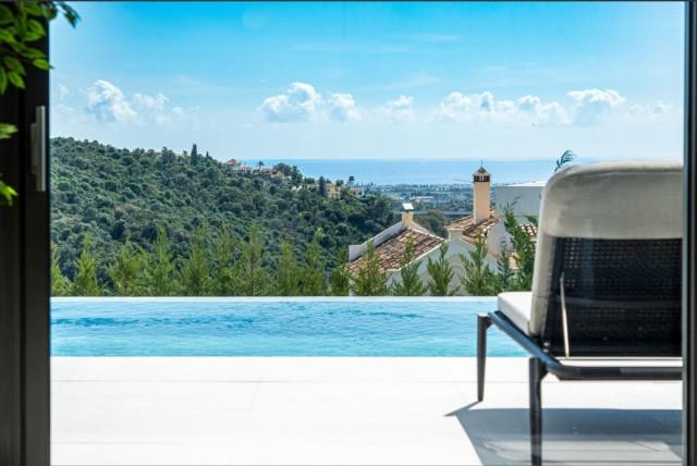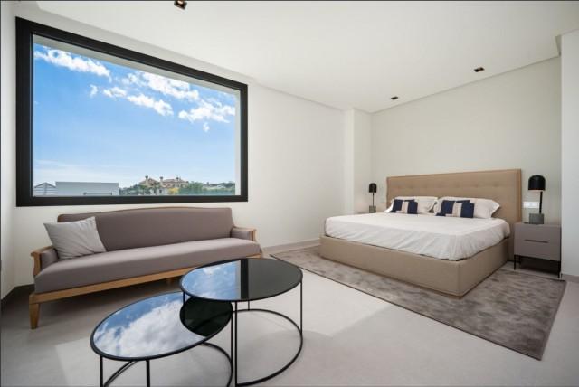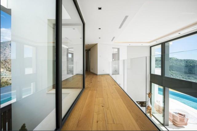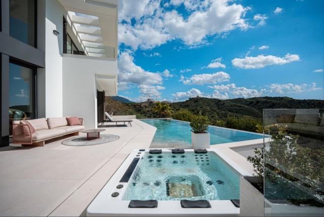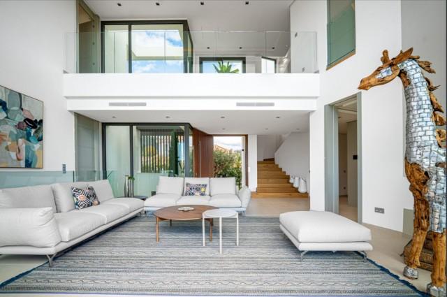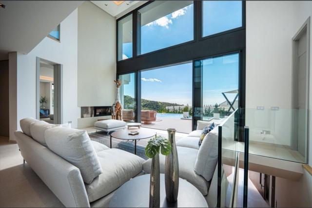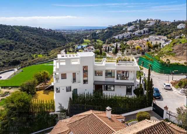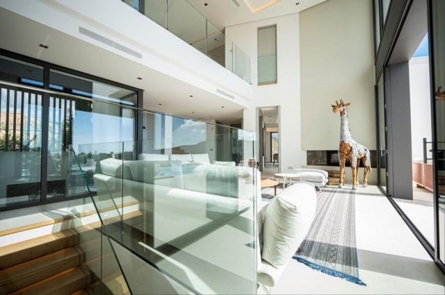 A striking modern villa set in the exclusive gated community of Lomas de La Quinta, overlooking the golf valley and the Mediterranean Sea. This south-facing property sits on a 1,377 m² plot and offers complete privacy, panoramic views, and refined design. The home features six bedrooms, ensuite bathrooms, and open living spaces with floor-to-ceiling windows that fill every room with light.