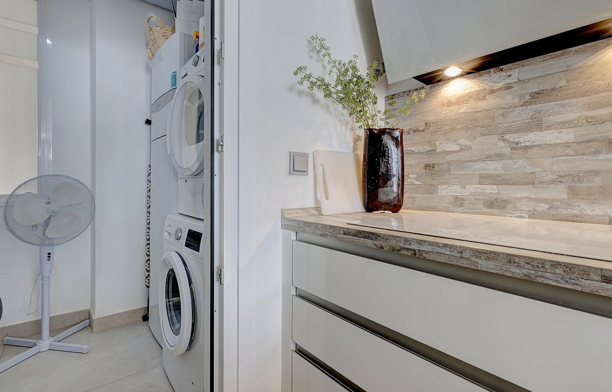This elegant duplex penthouse enjoys stunning panoramic sea views and a prime location in Benalmádena, just a short drive from the beach and the picturesque village of Benalmádena Pueblo.