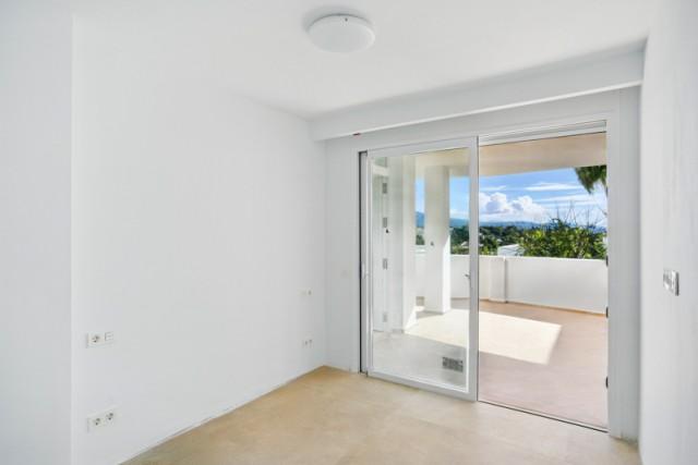 Discover modern Mediterranean living in this beautifully refurbished two-bedroom apartment, ideally situated within the sought-after gated community of Jardines de Andalucía in Nueva Andalucía. This stylish home features a spacious open-plan kitchen, living, and dining area, a comfortable guest bedroom with a separate bathroom, and an elegant master suite. Every room opens directly onto a private terrace boasting breathtaking views of La Concha Mountain and partial sea views.