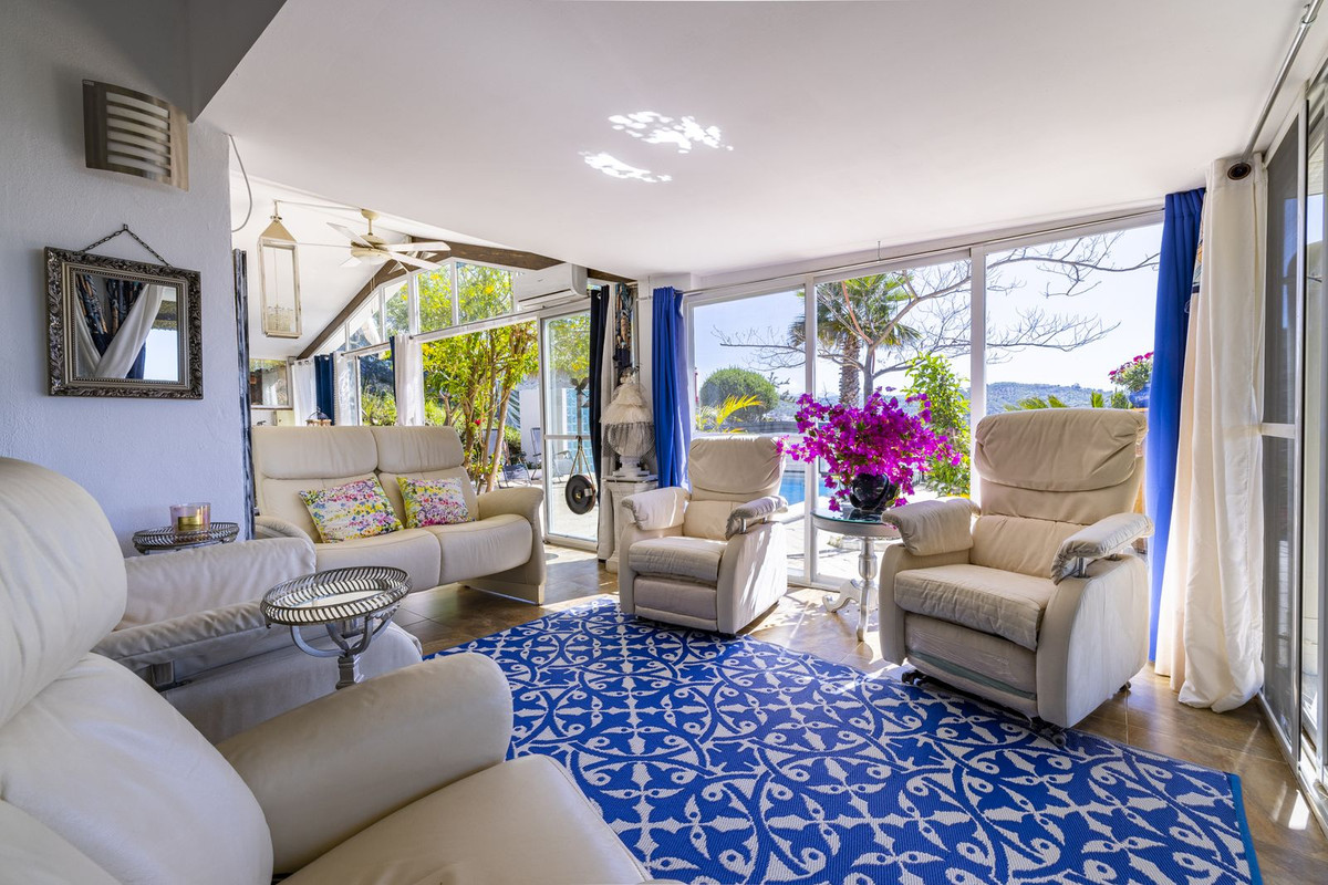 Enjoy the abundant natural light and breathtaking mountain and sea views from the various terraces surrounding the property. The beautiful private garden and covered heated pool offer an oasis of calm and a perfect place to relax during summer days.