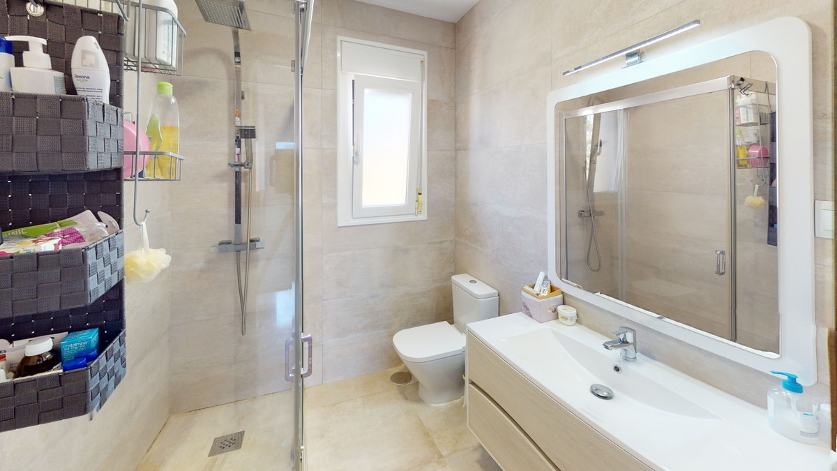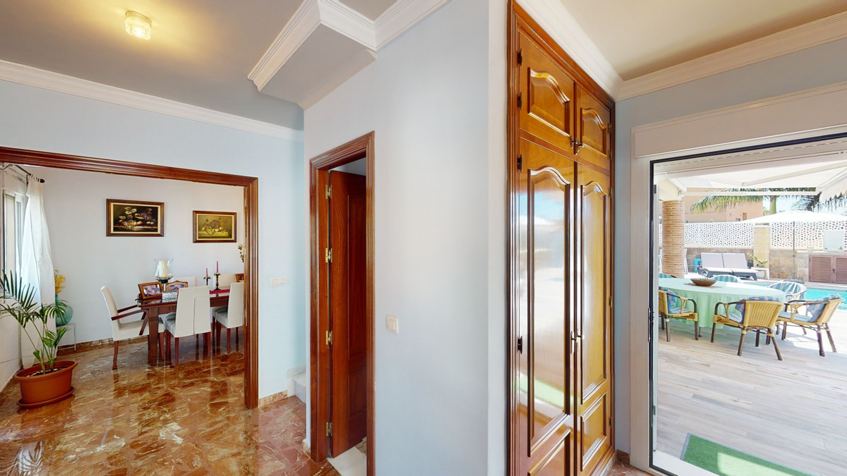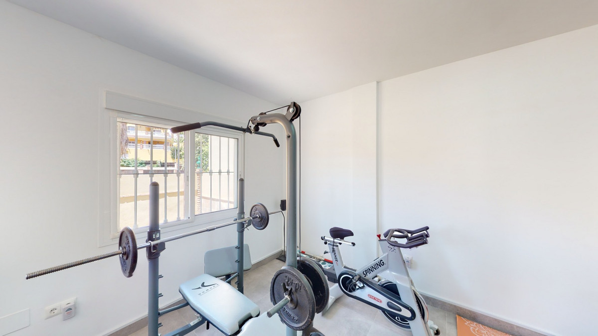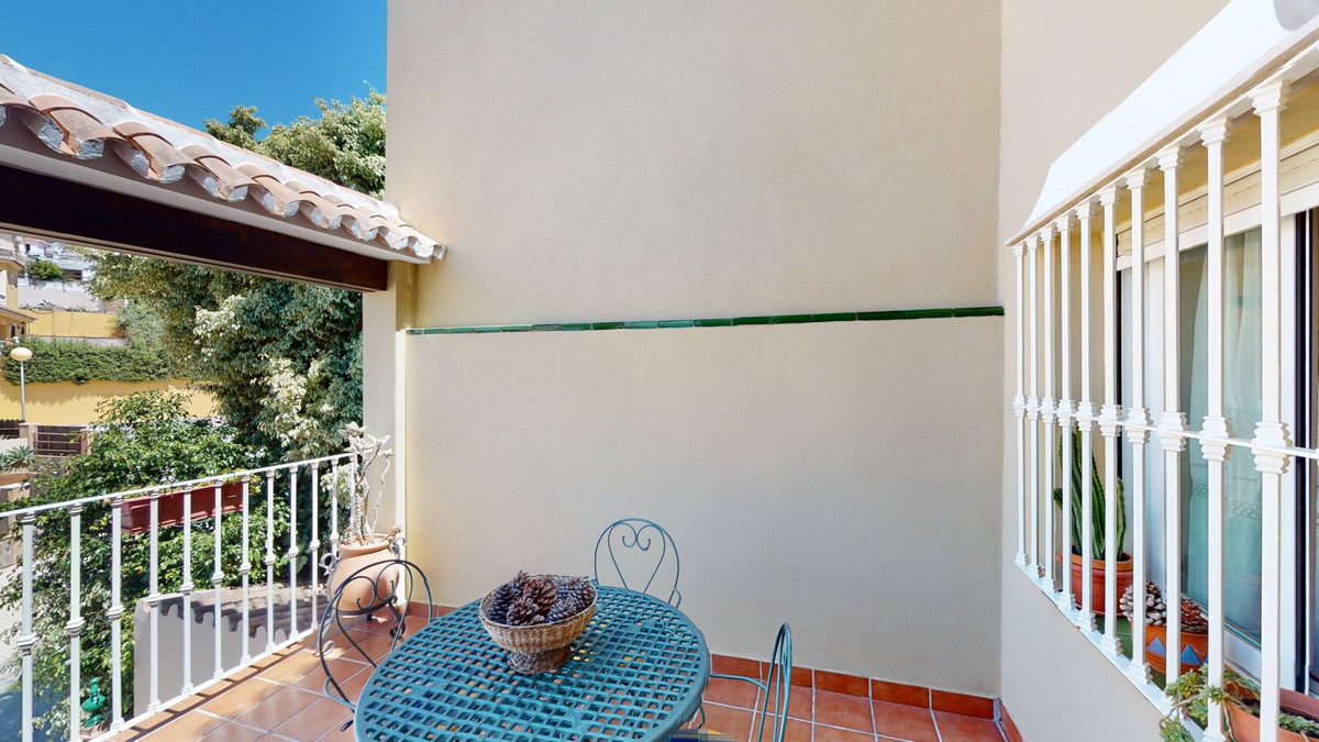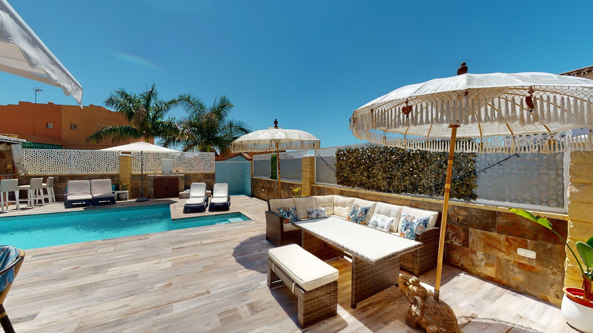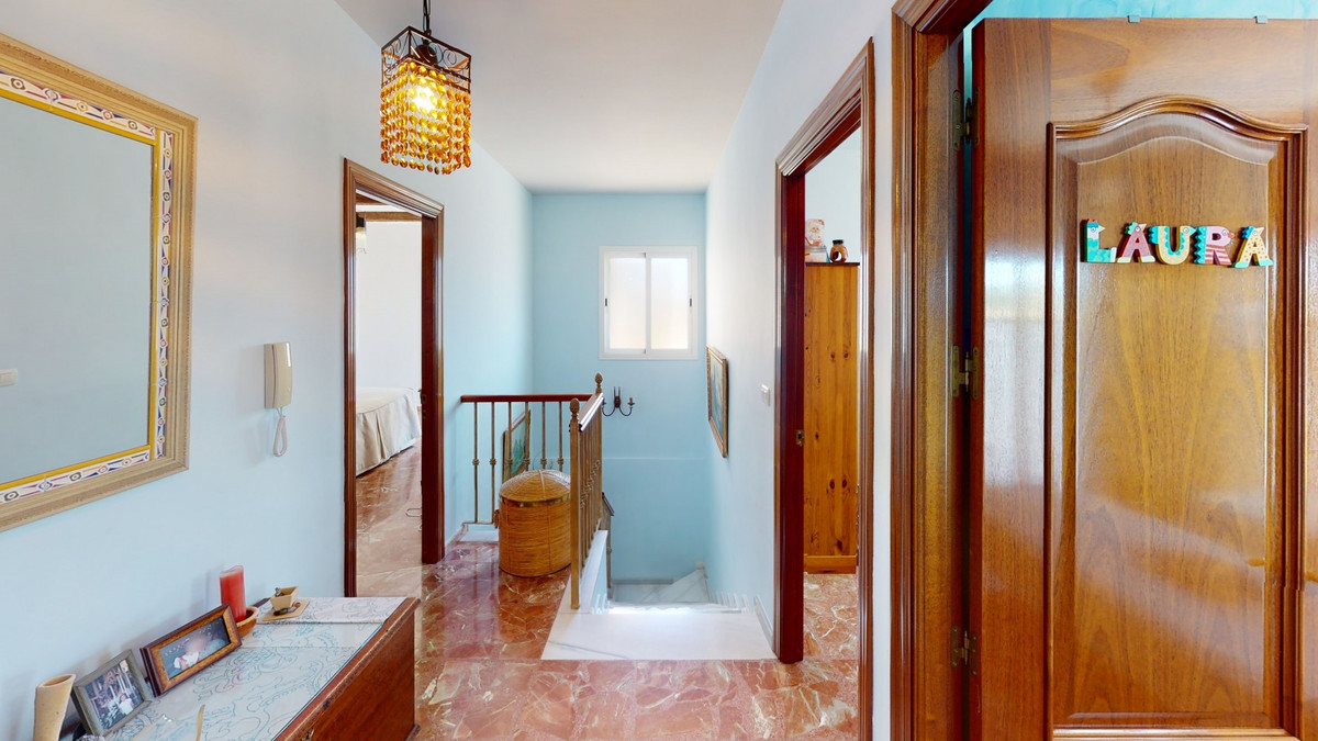 Beautiful, renovated semi-detached house in the quiet residential area of Viña Malaga. The three-storey house has two entrances. It is divided into 3 bedrooms, 3 bathrooms, a guest toilet, 2 kitchens, a living room and a home cinema. The outdoor area offers various chill-out areas, a pool, and an outdoor kitchen with barbecue. In the basement there is a double garage, which is now used as a cinema, as well as a gym, a kitchen and a guest toilet. This part can be used for entertaining friends, or as an independent apartment with 2 bedrooms. There is direct access from the garage to the ground floor. The ground floor has an entrance hall with a wardrobe, a bathroom with a shower, a kitchen with all modern appliances and an exit to the balcony, and a living and dining room with a fireplace. From the living room there is also an exit to the beautiful outdoor area. There you will find the large patio with many seating and lounging areas around the 4 x 8 m pool, an outdoor shower and stylish decorations. There is also a rustic bar and a barbecue area with water and electricity. In the evening, everything is romantically lit and you can enjoy wonderful meals with family and friends. On the first floor are the three bedrooms, one of which has a dressing room and on-suite bathroom. Each bedroom has its own balcony with sea views. The house was built in 2002 and was recently renovated. Don't miss the opportunity to visit this beautiful semi-detached house, which is only 5 minutes away from the beach, the motorway and the golf course. We are pleased to be able to present this dream property to you soon, either personally or via virtual viewing. Because this world is unique - just like our Axarquía. In Andalusia. On the Costa del Sol. Here, on the sunny side of life...