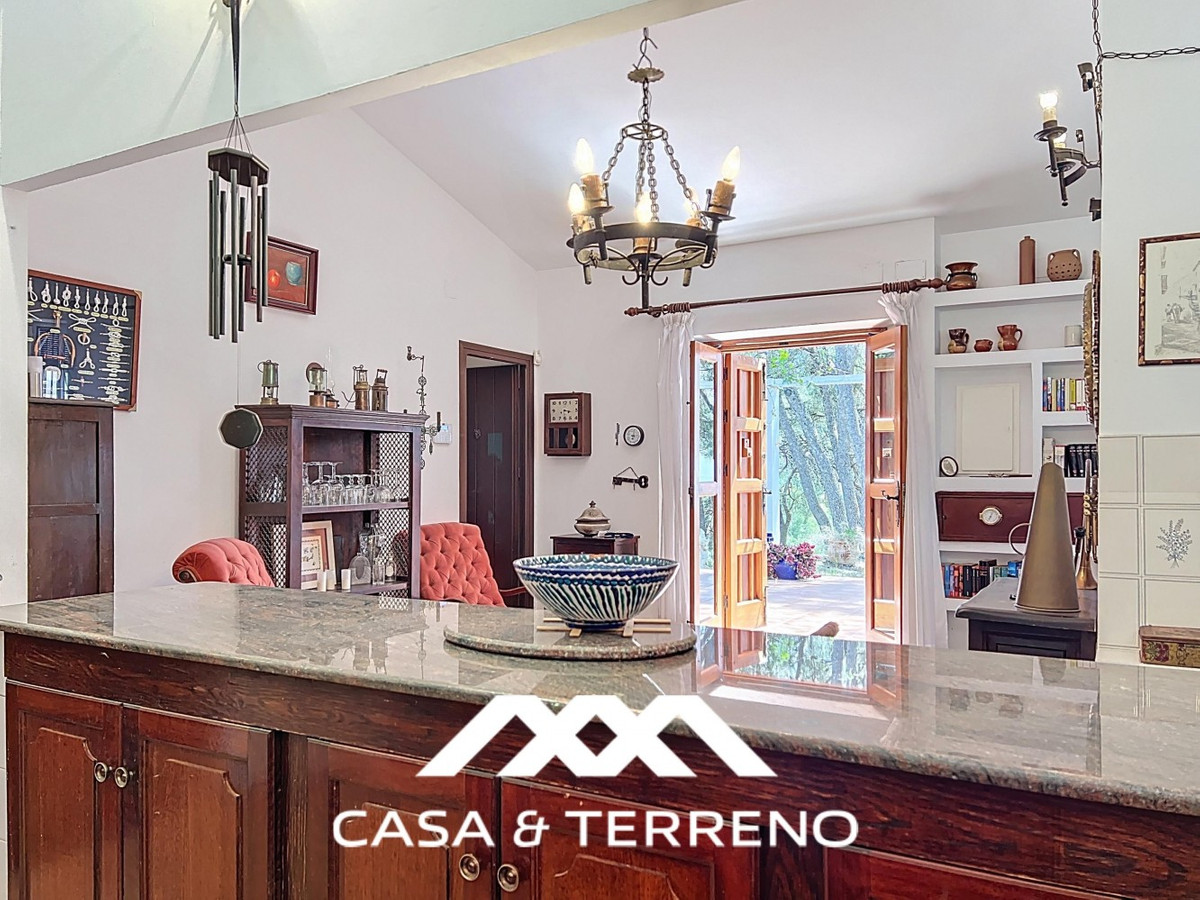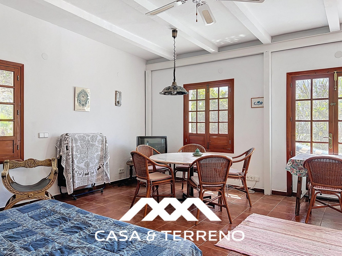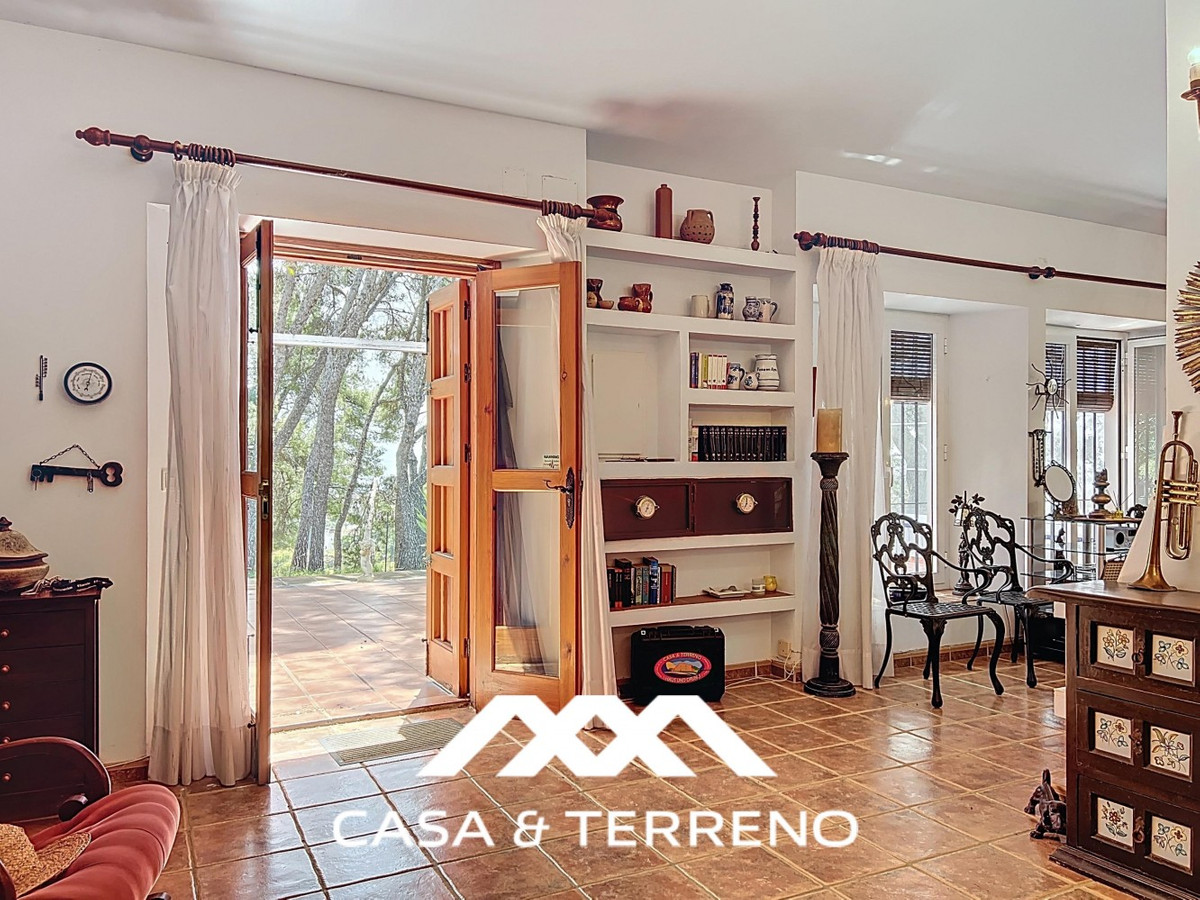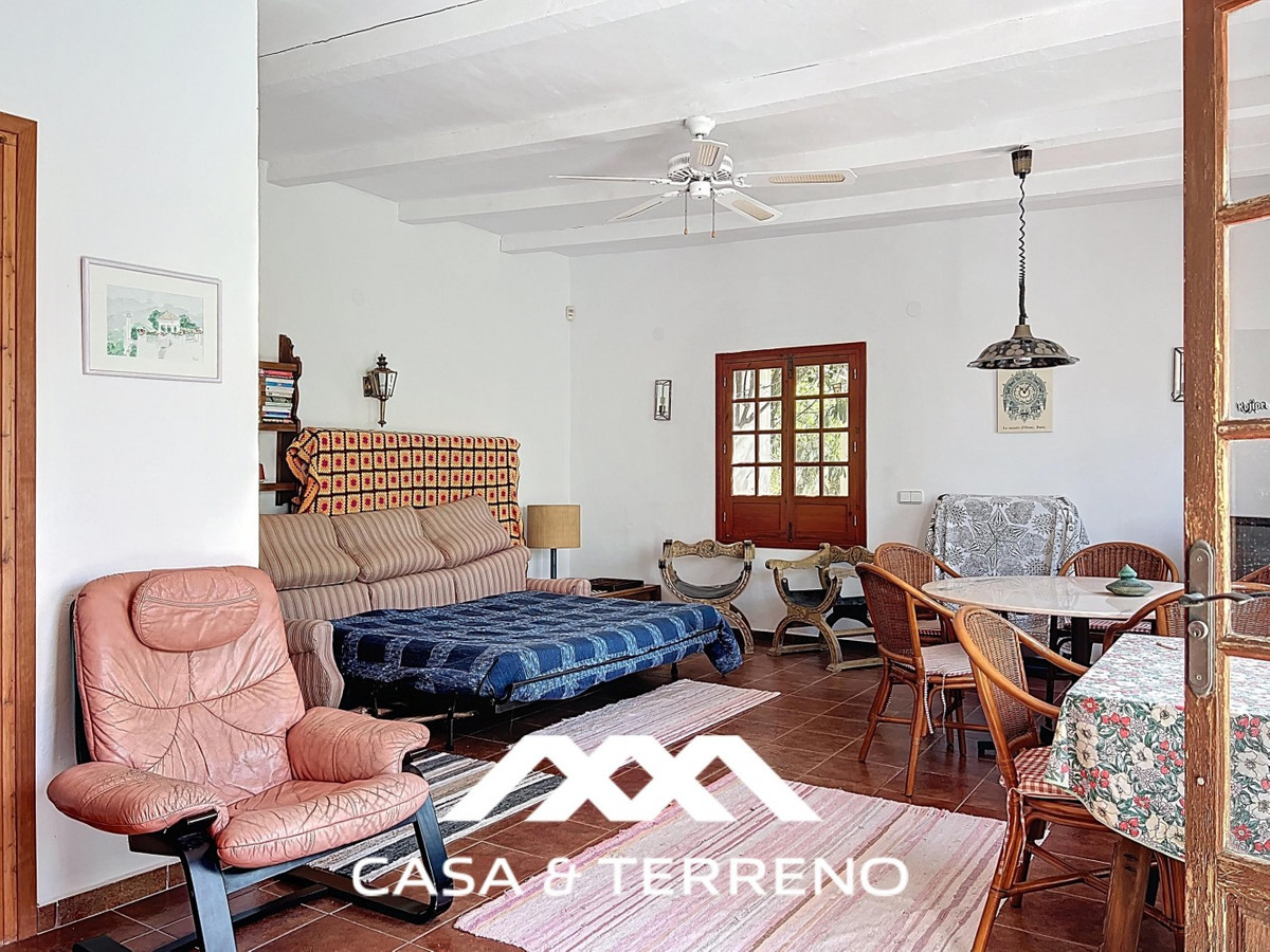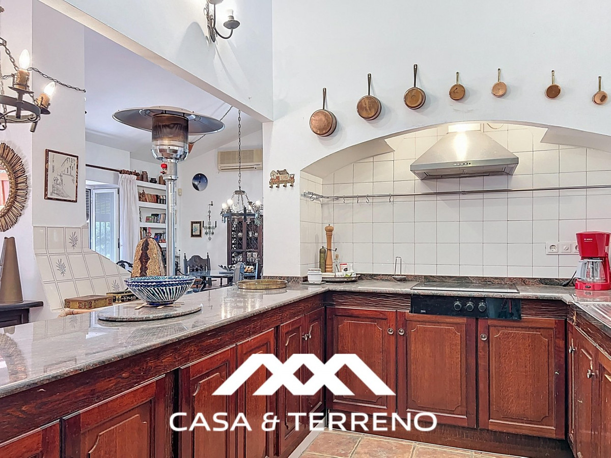 Located between Frigiliana and Nerja, this charming Andalusian-style property combines a comfortable main house with extraordinary exteriors, set on a spectacular plot of over 6,000 m2. Surrounded by mature pine trees and with complete privacy, this finca conveys the feeling of having your own private forest: quiet, green and full of character. The main house, distributed over one floor, offers three spacious bedrooms and three well-equipped bathrooms. The master bedroom is especially generous, providing a perfect space to relax. Terracotta floors and built-in shelving bring warmth and authenticity throughout the home. The living-dining room is bright and open, with high ceilings, large windows and a cosy fireplace, which connects seamlessly with the kitchen, equipped with rustic wooden cupboards, modern appliances, a pantry and charming details such as a row of copper pans. A covered terrace extends the life to the outside, perfect for dining in the shade or lounging all year round. There is also an integrated barbecue area and a separate building next to the main house, currently used as a storage room. But what really makes this property special is its impressive plot. Pine trees provide natural shade and a relaxing atmosphere, while small stone steps lead through the terraced grounds, generating the feeling of a retreat in the middle of nature. In addition, it has a full-size tennis court, a garage and a beautiful pool area with sea views among the trees. Next to the pool, the guest house offers an open-plan living space and bedroom, with a small kitchen and bathroom. Located just below the main house, it guarantees complete privacy and is ideal for visits or even for renting. A unique property for those who value space, tranquillity and nature, without giving up the proximity of the beaches of Nerja and the charm of the white village of Frigiliana. An uncommon combination of interior comfort and outdoor magic in one of the most desirable areas of the Axarquía.   We are delighted to be able to present this property to you soon, either personally or via virtual viewing. Because this world is unique - like our Axarquía. In Andalusia. On the Costa del Sol. Here, on the sunny side of life...