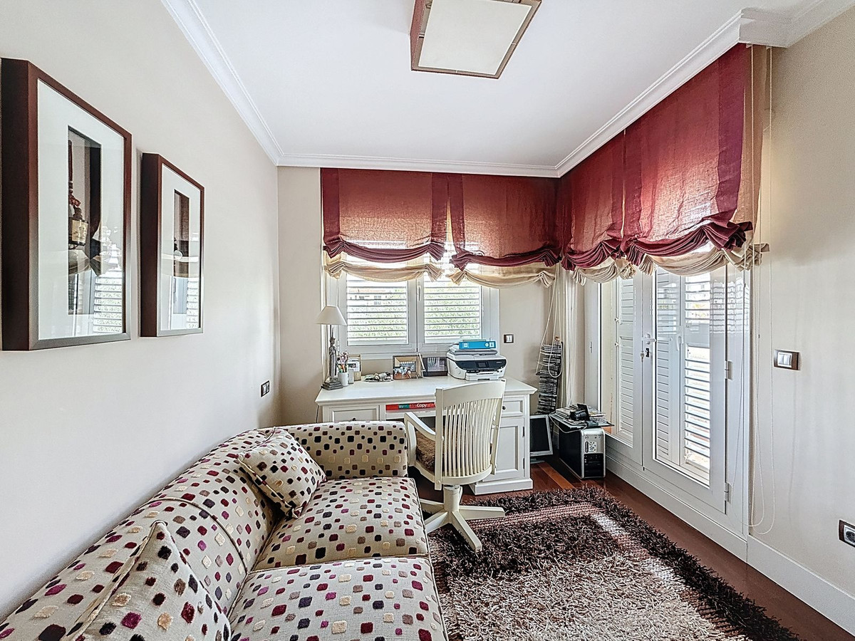 Upstairs, the night area offers three spacious bedrooms, including a tranquil master suite with en-suite bathroom. A second guest room with its own full bathroom, and a third bedroom currently used as an office, ensure comfort for family and visitors. An adjoining room – now used as dressing – can easily be converted into a fourth bedroom or private retreat.