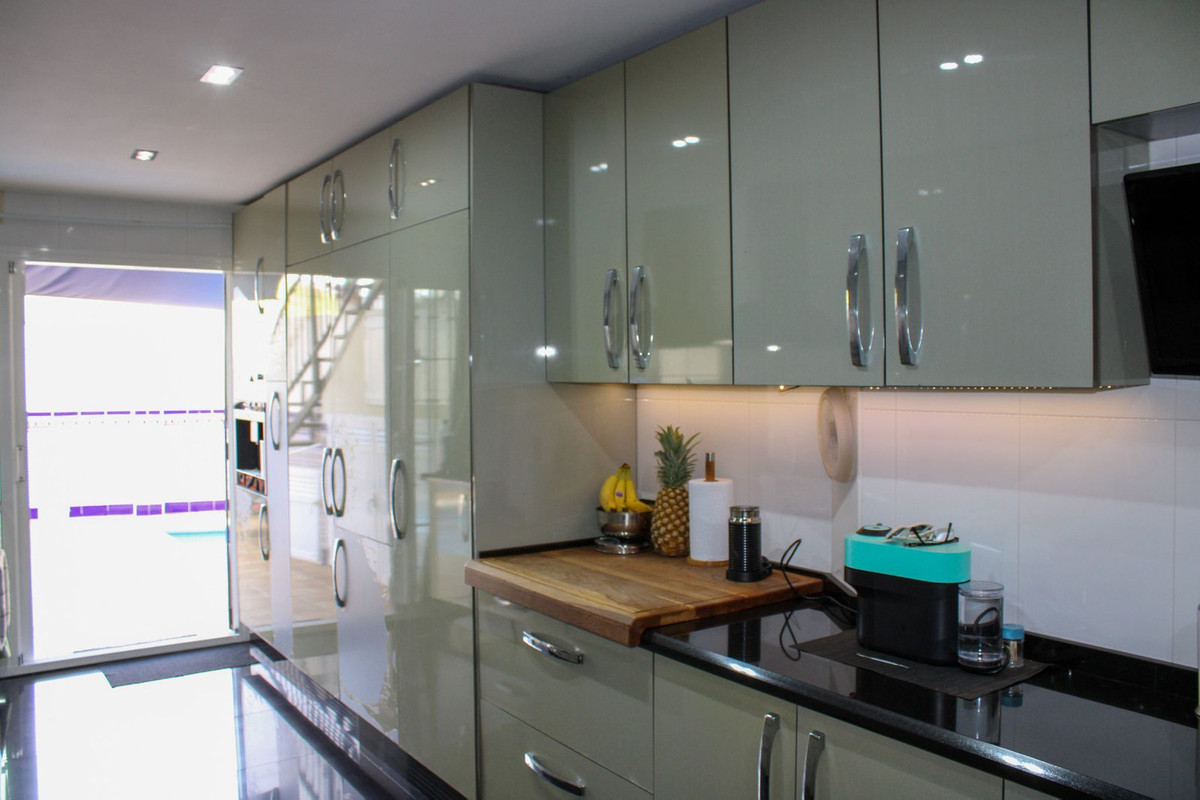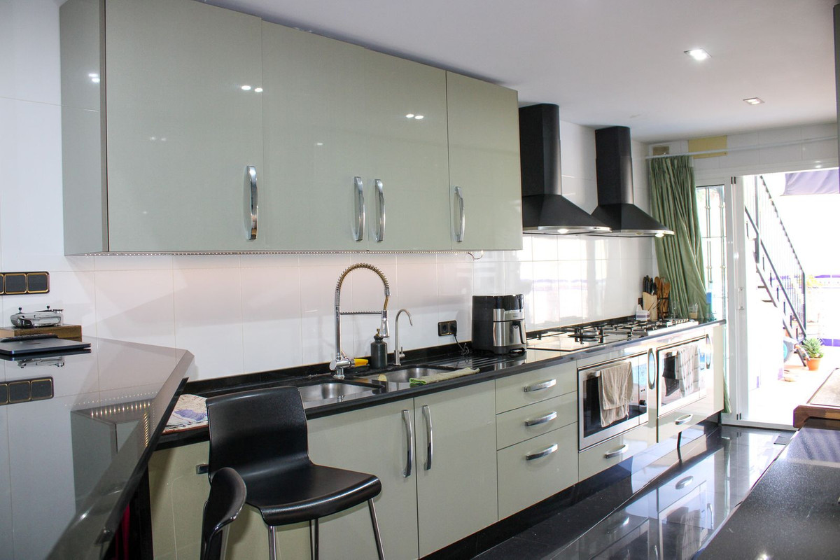 We go down the stairs with the beautifully decorated wrought iron railing, to three bedrooms and two bathrooms. One of the bedrooms has its own bathroom and there is also access to the house's natural meeting place, the large terrace with private pool. There is also a fully equipped modern kitchen, as well as a washing machine and dryer. The terrace can also be accessed from the private parking, which is located at the entrance to the house.