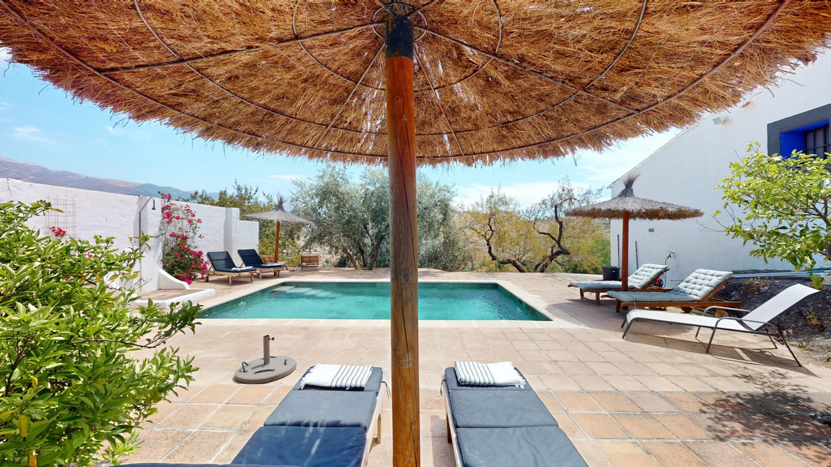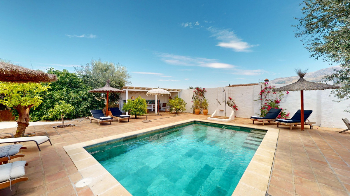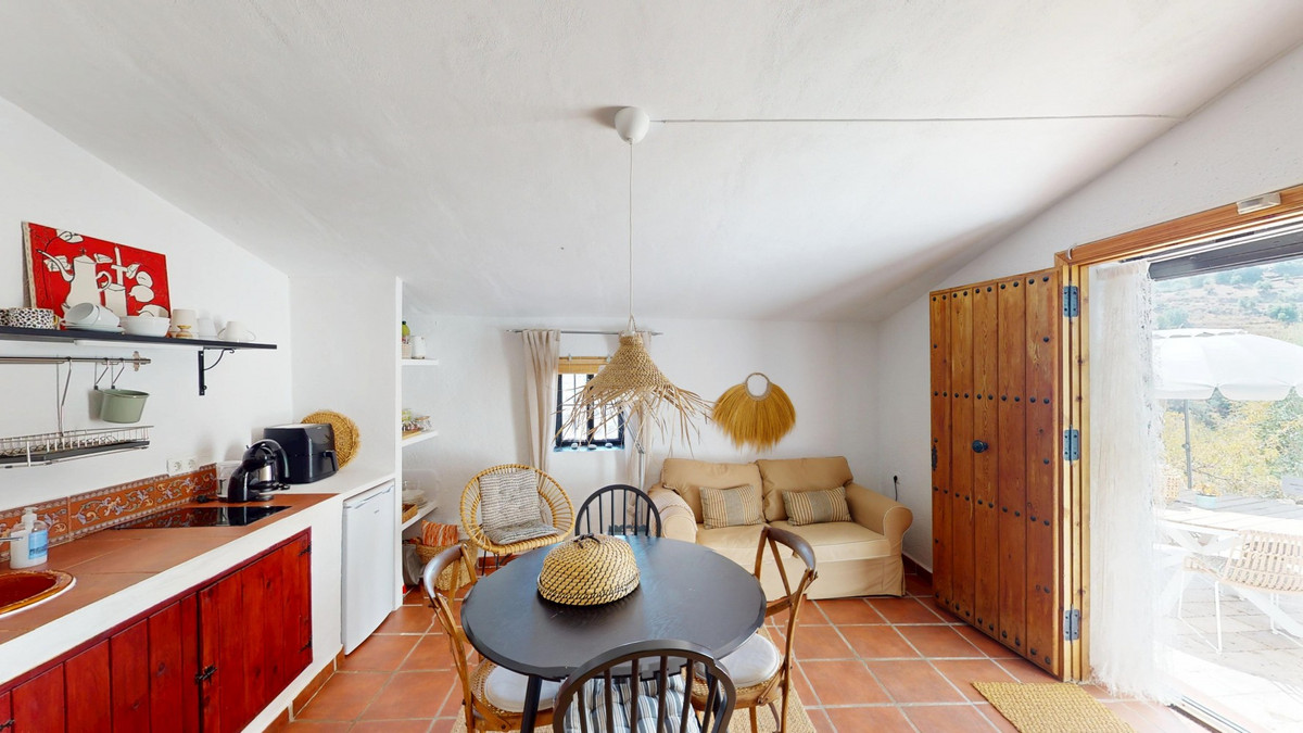 Nestled in the hills of Arenas, Málaga, this enchanting cortijo is more than just a home it's a Mediterranean haven full of character, peace, and possibility. Divided into three separate apartments, its perfectly suited for use as a charming B&B or a spacious family retreat, offering flexibility, comfort, and soul. The main apartment features two bedrooms and two stylish bathrooms, each with walk-in showers and carefully chosen details like marble vanities and patterned tiles. The open-plan living area exudes warmth, with terracotta floors, a soft grey sectional sofa, rattan accents, and a sparkling crystal chandelier. The kitchen is both beautiful and practical, with white cabinetry, colorful tiles, and modern appliances including a dishwasher and oven. The second apartment is a cozy, light-filled one-bedroom retreat. Though compact, it offers everything you need a small kitchenette, a chic bathroom with a tropical-leaf tiled shower, and elegant touches like chandeliers and decorative mirrors. Rattan, terracotta, and woven details bring warmth and texture to every corner. The third apartment offers a thoughtful layout with a bedroom, bathroom, office, kitchen, and living areas. Whitewashed walls, a fireplace, and large windows give it a bright, open feel, while red kitchen cabinets and rustic furnishings add a splash of personality. Every room is adorned with artistic elements, unique lighting, and handcrafted decor. But its the outdoor space that truly makes this property magical. The cortijo is surrounded by breathtaking mountain views, and the grounds are filled with charm natural stone flooring, shady terraces, tucked-away seating nooks, a daybed for lazy afternoons, and turquoise water shimmering in the pool. The covered outdoor kitchen is a highlight in itself, with handmade tiles and a handcrafted worktop that speaks to the care and love poured into every detail of this home. Every corner of this cortijo is full of character from artistic wall hangings and handmade lighting to the sense of calm that wraps around you the moment you arrive. Whether youre seeking a peaceful personal retreat or ready to welcome guests to a special B&B, this Andalusian gem is the perfect getaway. We are pleased to be able to present this dream property to you soon, either personally or via virtual viewing. Because this world is unique - just like our Axarquía. In Andalusia. On the Costa del Sol. Here, on the sunny side of life...