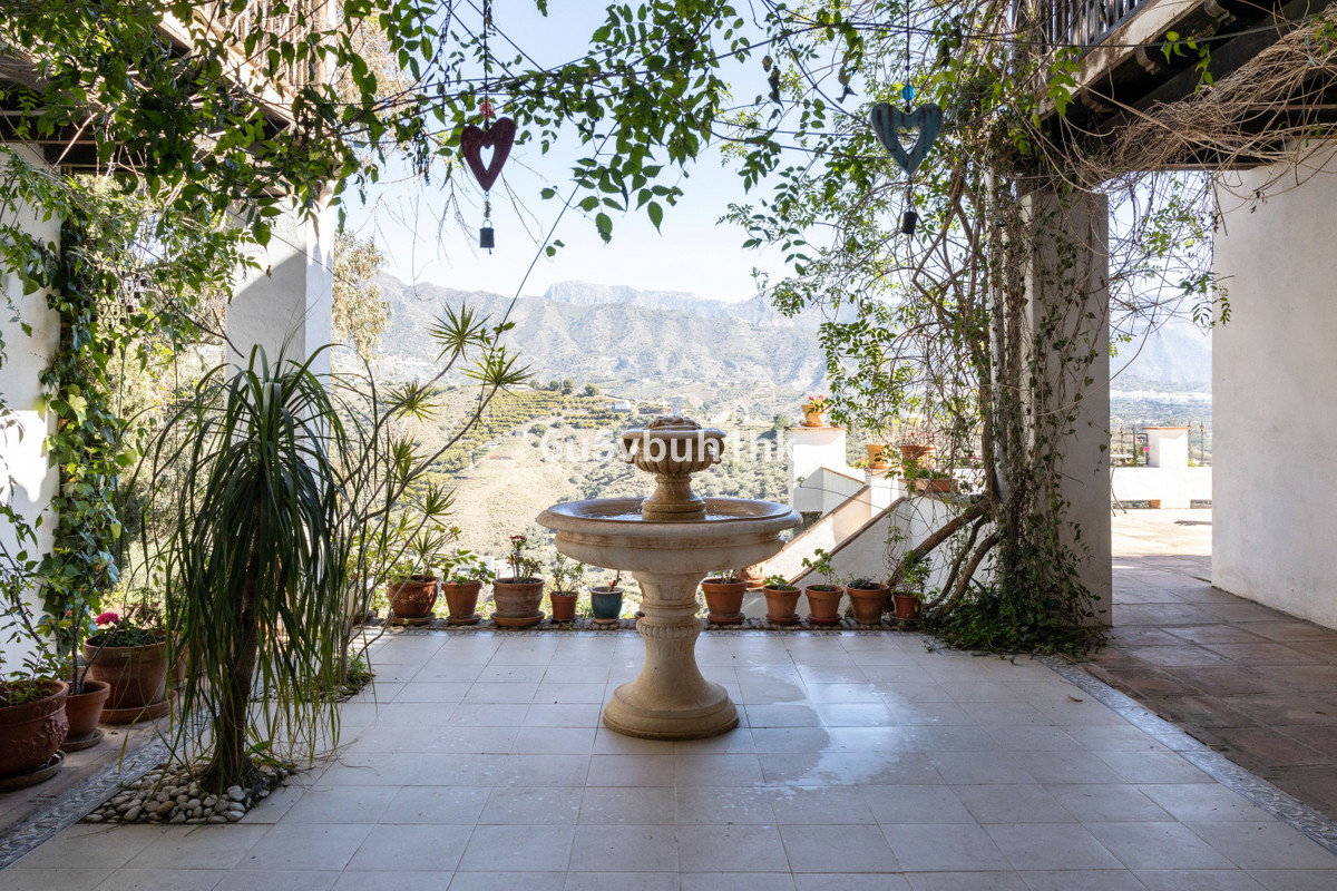 This beautiful and spacious property is located in a tranquil setting, perfect for those seeking a peaceful and relaxing environment, in between the villages of Torrox and Frigiliana, just 25 minutes away from the beach.Upon entering the property, an almost completely paved driveway leads to a spacious entrance area/parking for several vehicles.The main house includes two separate houses connected by an interior corridor. Additionally, the property also counts with an independent studio apartment. In total, the villa counts with 7 bedrooms making its layout suitable for a large number of people, ideal for a large family, group of friends, or investment project, such as B&B. This very attractive property also counts with several terraces, private pool and garden areas, great places to relax and enjoy the sourrounding mountains and the stunning views of the village of Frigiliana.Additionally, one of the top features is the yoga studio, great for all people who are into yoga or other forms of exercise. The property also includes a wine cellar.