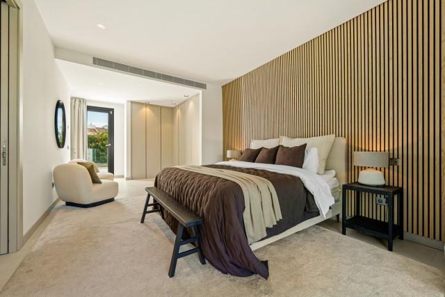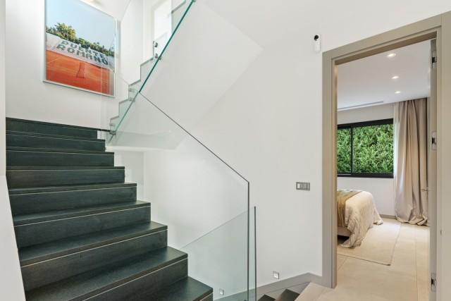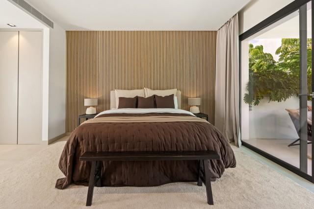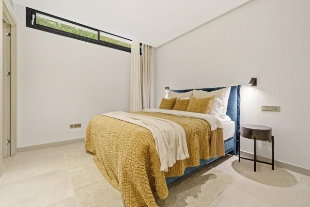 Each bedroom is designed with sophistication and warmth, featuring fitted wardrobes and elegant ensuite bathrooms. Additional highlights include a private cinema and entertainment room, a fully equipped home gym, and a secure private garage. It´s an ideal modern residence in one of Marbella’s most desirable locations, offering refined living close to beaches, golf, and all amenities.