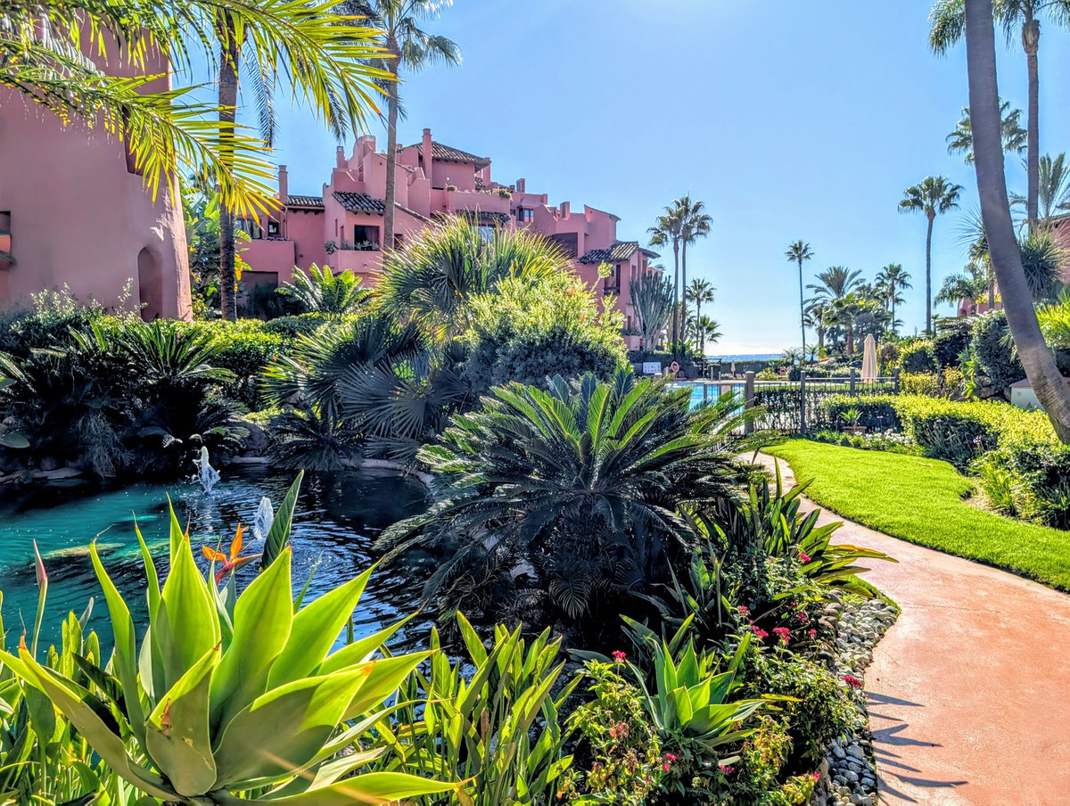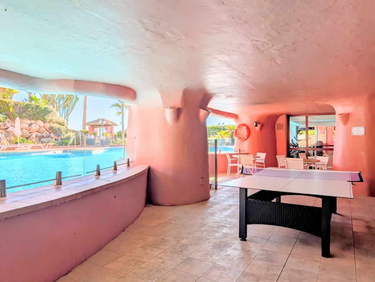 This beachfront complex - Menara - is surrounded by other exclusive complexes which all benefit from landscaped public park with ancient wathing tower. There are also several amenities at the walking distance such as well known restaurant Tikitano and some shops and a bar in nearby complex, more amenities can be found just a short drive from home. Estepona town is 6min drive from Menara and its easily accessible from Malaga Airport using AP-7 toll road.