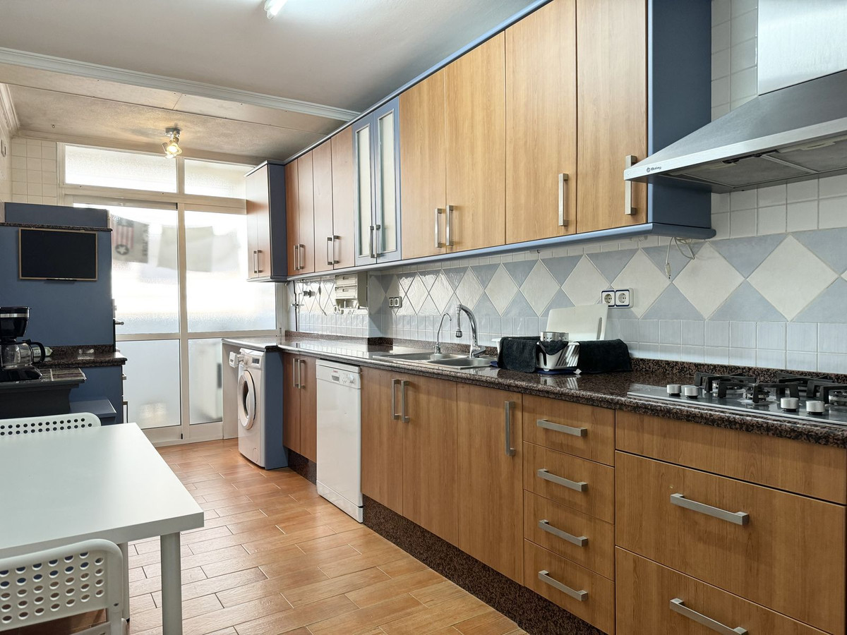 This bright and spacious four-bedroom, two-bathroom apartment is located in the highly sought-after area of Plaza Hispanidad in Fuengirola (Málaga) – one of the most convenient and family-friendly neighbourhoods in town.