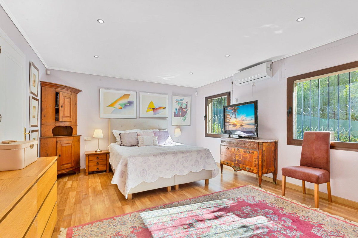 Charming and well-maintained villa on one level in the quiet area of Campo Mijas only 3 km from the beach in Fuengirola. The villa is very private with a nice pool area with bar and large terrace areas. The garden is easy to maintain as it is mostly paved with stones but with nice flower beds with several fruit trees such as passion fruit, lemon, orange, pomegranate, mango and sweet, Spanish "nisperos".