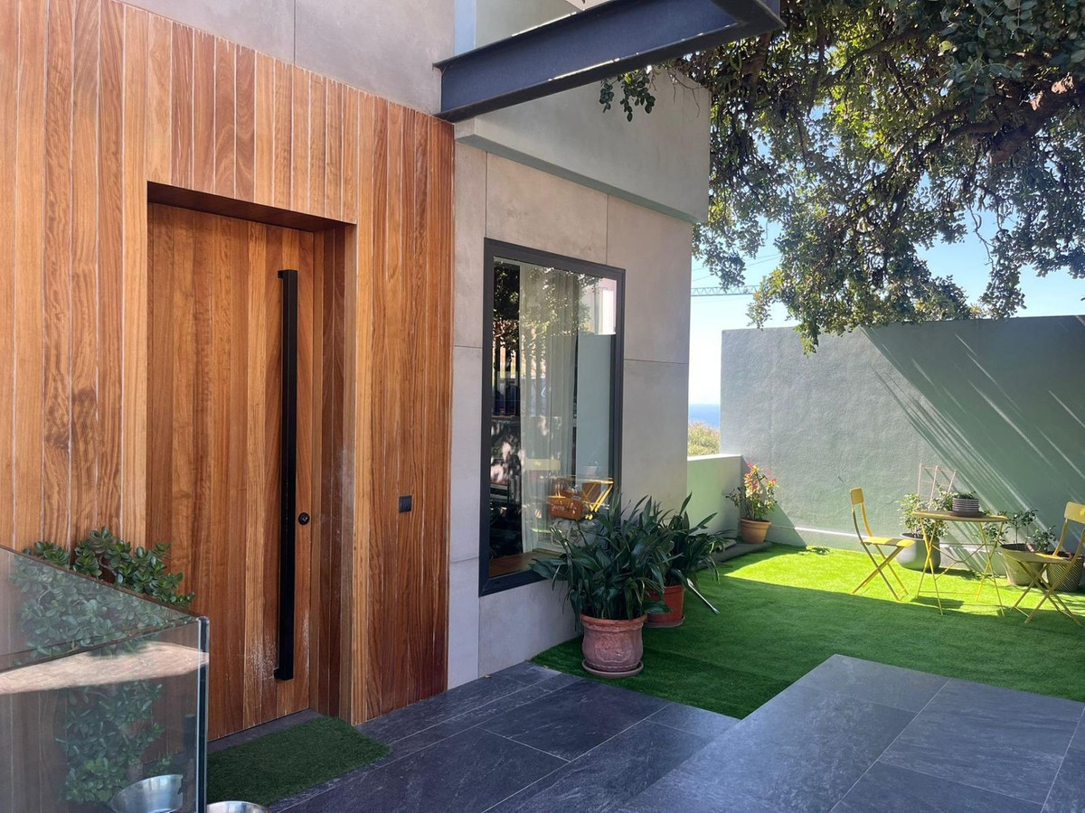 URB Buena Vista. Large villa with sea views in a contemporary style, completed in 2020. Great design and spectacular finishes and top quality materials. The villa has a plot of 600 M2 and a total constructed area of 300m2 on two floors plus a basement. It is distributed in 5 bedrooms, 3 bathrooms and a toilet. Large living room with open kitchen with island access to a 26m2 terrace with spectacular sea views. Lutron brand home automation for lighting control and electric curtains, Kreon Lighting, 20 Photovoltaic Panels with 5 kWh energy generator, Wallbox charger for electric vehicles, exterior finishes in natural stone and porcelain, the material and granulated format of Porcelanosa, natural PORCELANOSA brand wooden staircase, double glazed windows with argon gas chamber and 5x5 guardian sun 4x4 camera, Bang&Olufsen sound and professional TV in living room and basement, swimming pool finished in natural stone Indonesian Balinese style with salt water and filtration Daysi, Fenix ​​Kitchen finished in black and natural wood elements with porcelain countertop, NEFF appliances, Teppanyaki, Pando wine cellar, 70cm wide matte black refrigerator, main bathroom furniture and INBANI brand marble, main bathroom finished in large format Italian porcelain tile, underfloor heating water in the entire house with independent areas, independent air conditioning by zones, DAIKIN aerothermal machine,