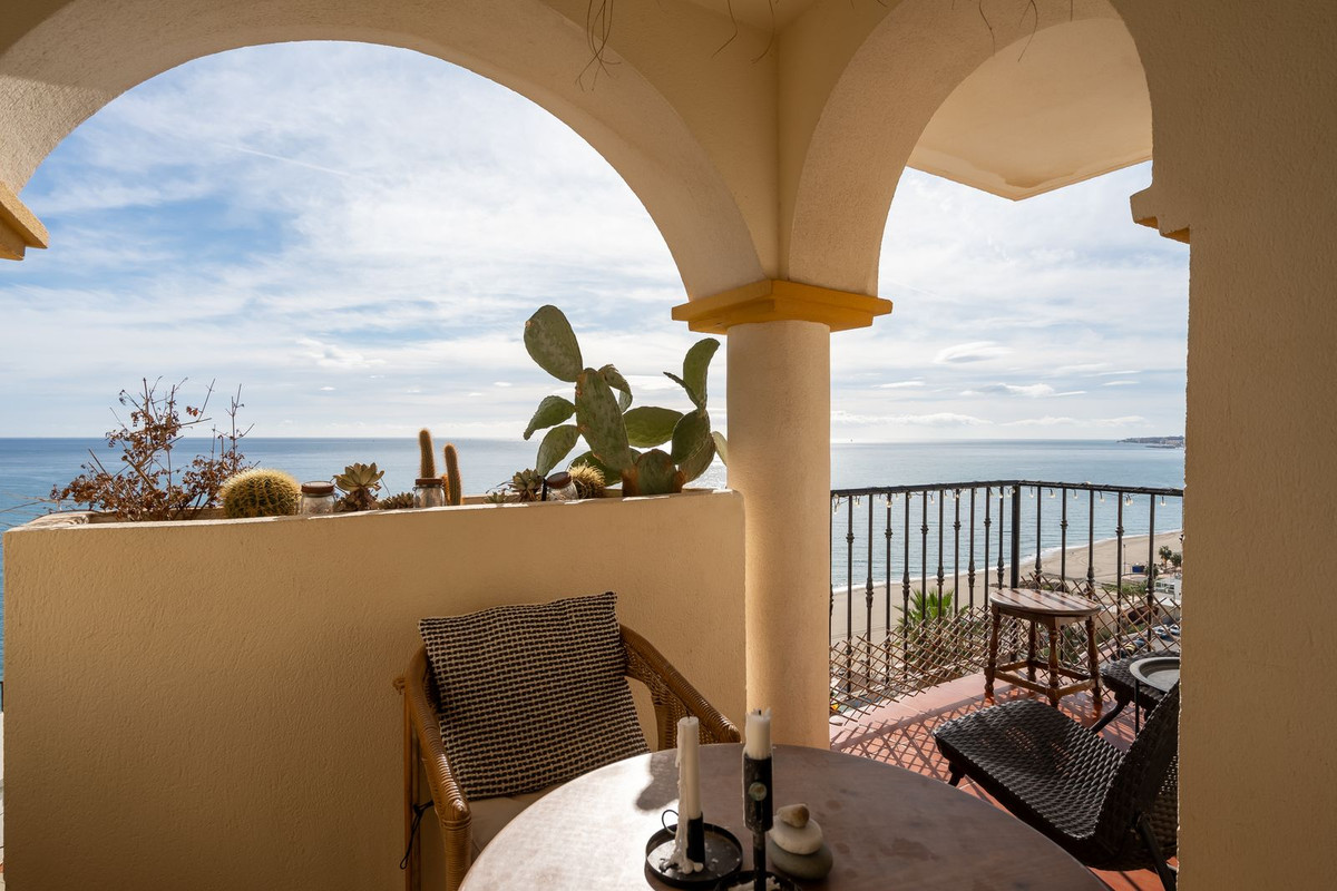 This bright and spacious duplex apartment is located in one of the most sought-after frontline beach urbanisations in Carvajal, Benalmádena. With south-facing orientation and sweeping views of the Mediterranean and Fuengirola Bay, this home offers some of the best views in the entire complex.