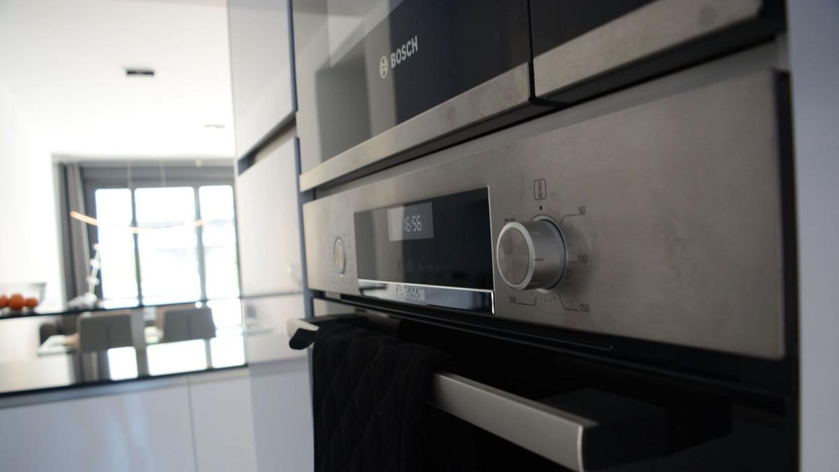 The fully fitted luxury kitchen is designed for both functionality and style, featuring top-of-the-range appliances such as an induction hob, built-in oven and microwave, dishwasher, and fridge/freezer. The breakfast bar opens onto the main living area, making it perfect for entertaining. A separate utility room houses the aerothermal hybrid water and underfloor heating unit, washing machine, and additional storage. From here, you can step directly onto the charming east-facing terrace—ideal for morning coffee and enjoying the sunrise.