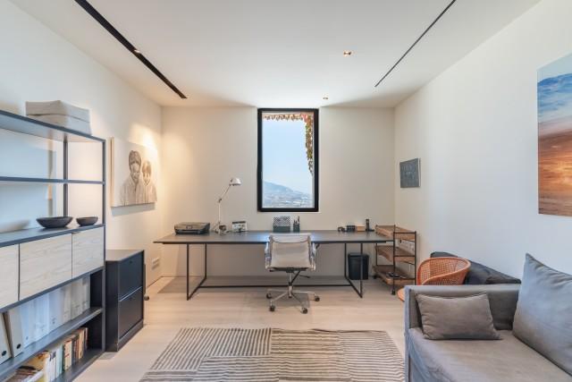 The lower level adds versatility with three additional bedrooms, a TV room, a fully equipped gym, a sauna, and a covered terrace used as a playroom. From here, there is direct access to the swimming pool, strategically located to enjoy the coastal views. With underfloor heating, electric blinds, and five en-suite bedrooms, this property offers comfort, privacy, and a lifestyle immersed in nature, just minutes from Elviria and Marbella.