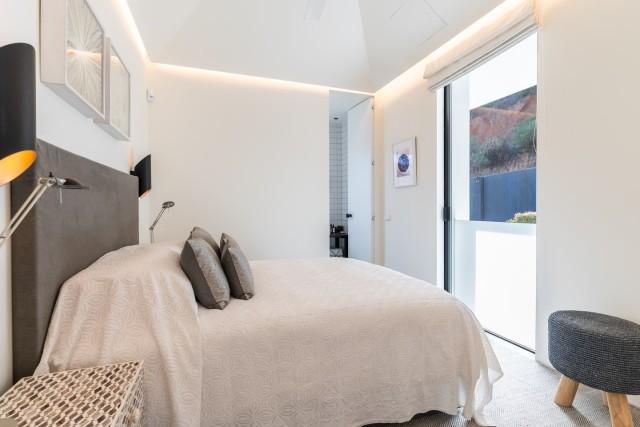 This exceptional residence in La Mairena stands out for its unique design, created to maximize views of the sea, mountains, and the surrounding natural environment. Distributed over three levels, the home offers a constant connection with the outdoors thanks to large floor-to-ceiling windows and an architecture that prioritizes light and spaciousness. The entrance level houses a spacious living room and several bedrooms facing the Mediterranean landscape. The middle level constitutes the main living area, with an open-plan kitchen and pantry that flows into the dining and living areas, all with access to a large terrace ideal for al fresco dining.