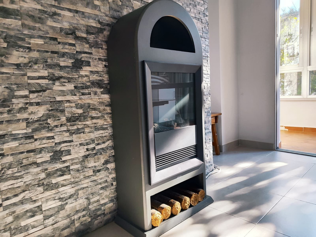 The flat boasts a spacious glazed terrace that opens onto a large private garden with lawn, trees and plants—perfect for enjoying outdoor living. The open-plan kitchen comes fully equipped with a washing machine and integrates seamlessly with the generous living–dining area, creating a warm and functional space. The bedroom includes built-in wardrobes providing plenty of storage, and the full bathroom is ready for immediate use.