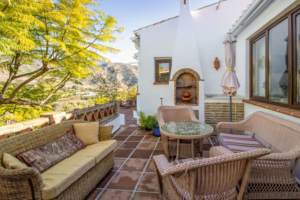 In the sought-after area of Tablazos, between Frigiliana and Nerja, you will find this cosy and charming villa that offers both comfort and character. The house features four bedrooms and three bathrooms, a living room full of personality, and a beautifully renovated kitchen that invites both everyday living and social gatherings. Thanks to six air-conditioning units, the indoor climate is always pleasant, and with the recently installed 14 solar panels, electricity consumption remains low year-round. The house also offers three fireplaces that not only provide warmth but add a cosy atmosphere.
