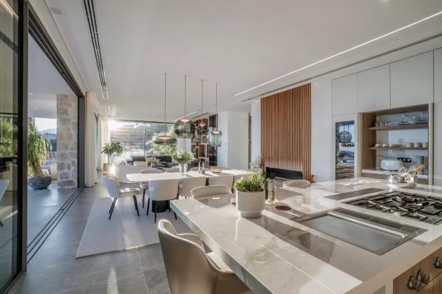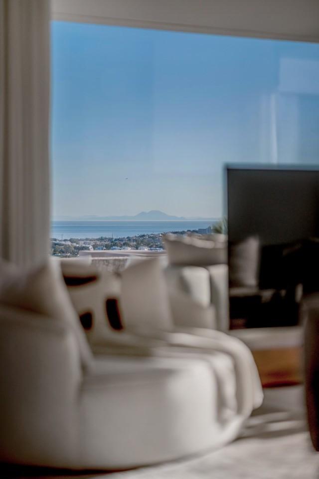 From the moment you arrive, you'll be greeted by an endless horizon, with panoramic views stretching from the Mediterranean Sea to the African coast. Its contemporary design enhances this experience, with open-plan interiors that seamlessly blend with the natural surroundings. Floor-to-ceiling windows and spacious living areas create a fluid connection between indoors and outdoors, filling the space with natural light, fresh air, and panoramic views from every corner.