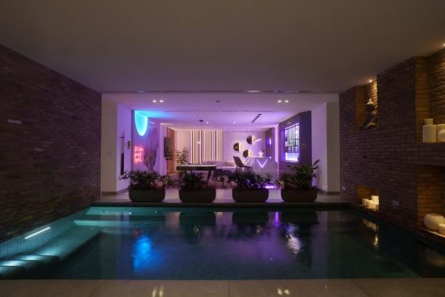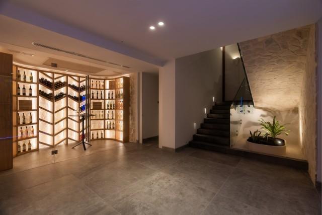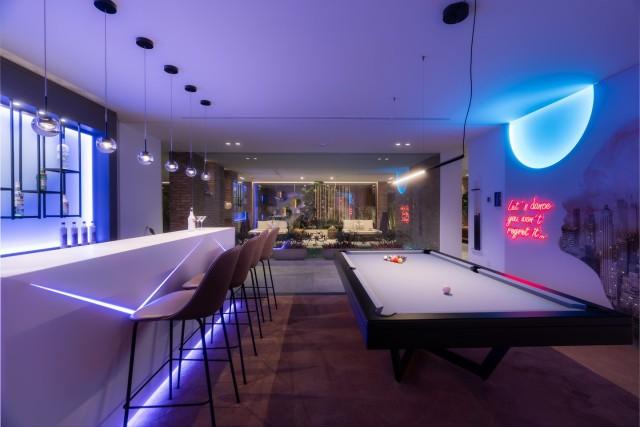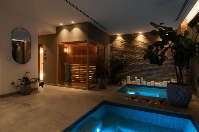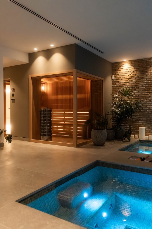 This villa boasts a private spa with a heated indoor pool, sauna, steam room, and massage area. A fully equipped gym with Eleiko equipment allows you to stay active without leaving home, while the spacious entertainment room provides the ideal setting for movie nights, game nights, or simply relaxing with family and friends.