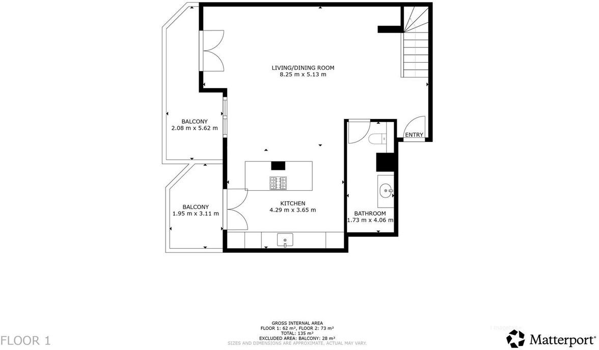 Downstairs: entrance, living room / dining area / kitchen (all open space), terrace from the living room and another terrace from the kitchen (with built in sofa). Laundry / toilet.