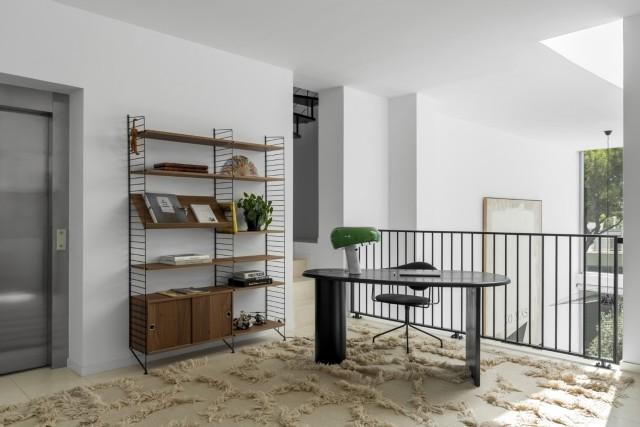The property is distributed across four spacious levels, all connected by a private elevator for maximum comfort and convenience. The main living areas span two floors and feature generous open-plan spaces ideal for entertaining and family living. Large glass doors lead to a south-facing terrace with a private heated pool, creating a seamless indoor-outdoor connection and an inviting setting for year-round enjoyment.