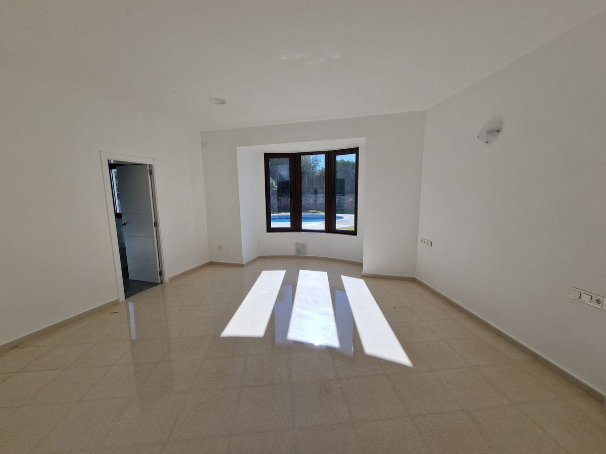 Outside, the villa offers an extensive garden, a private swimming pool, and a tennis court, creating the perfect setting to enjoy the climate and lifestyle of Sotogrande.