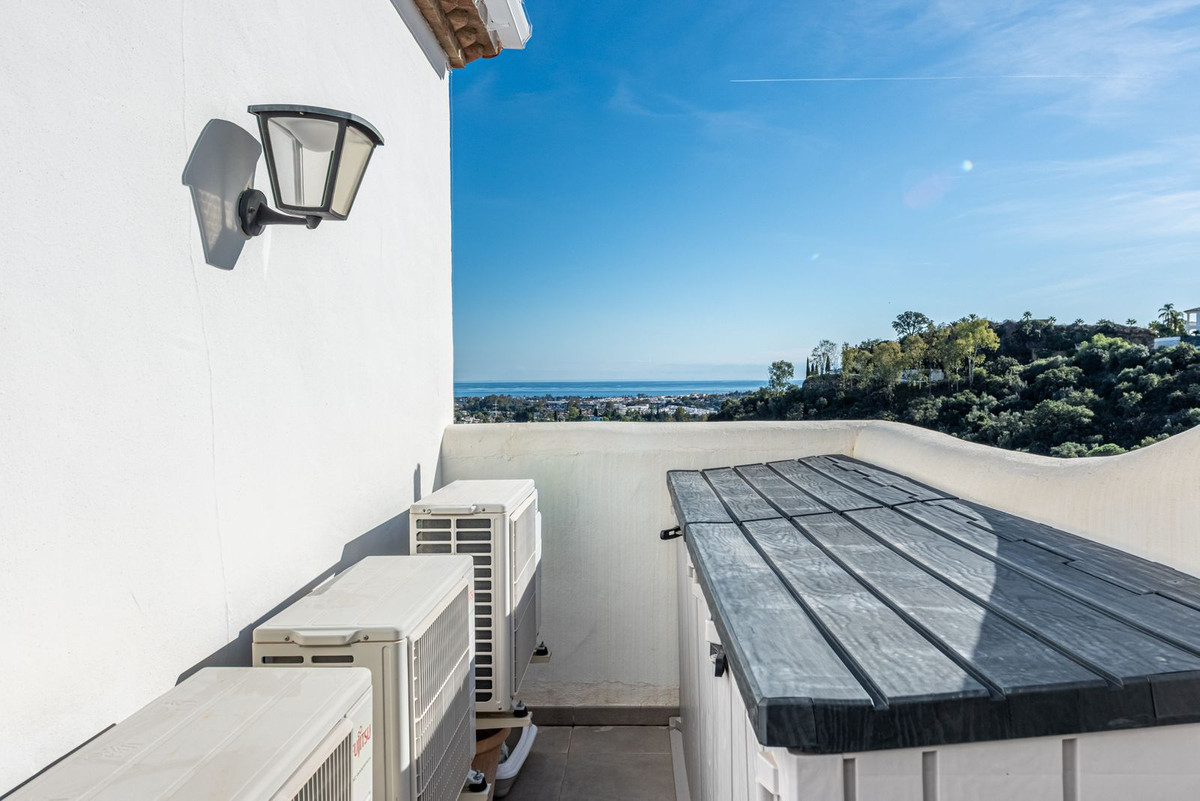 Renovated two-bedroom penthouse with breathtaking panoramic sea views in Las Terrazas de Los Almendros, Benahavís. Ideally located in a peaceful setting just minutes from San Pedro and Puerto Banús, with easy access to amenities in Los Halcones.