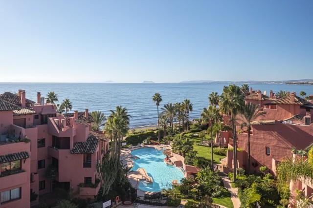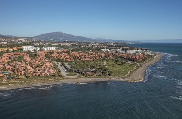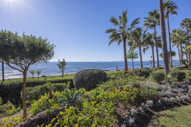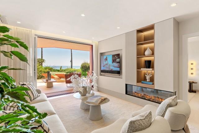Set within one of the most prestigious beachfront communities on the New Golden Mile, this beautifully renovated three-bedroom ground floor apartment offers a refined blend of luxury, comfort, and prime coastal living. Positioned between Marbella and Estepona, the gated development is renowned for its elegant architecture, tropical landscaped gardens, and five-star facilities, creating an exclusive resort-style environment directly by the sea.