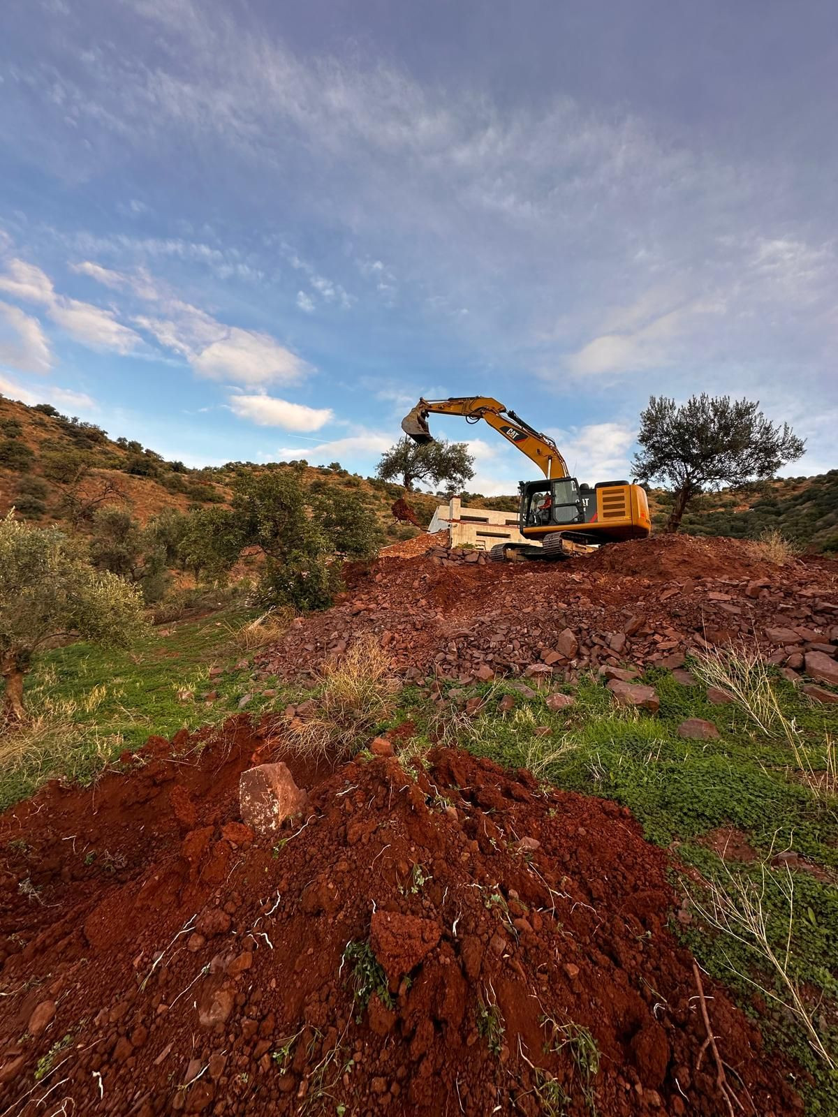 olive trees, carob trees, fruit trees, and ecological greenhouse.