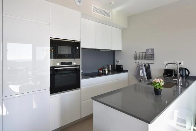 Luxury 3 bedroom apartment with stunning sea views in the modern Monte Paraiso complex in Fuengirola southern Spain. This modern apartment was completed in 2019 and stylishly decorated with modern furniture and beds with high-quality mattresses. The spacious apartment features 3 bedrooms, 2 bathrooms, a luxurious open-plan kitchen and a spacious south-west facing terrace. In the cosy living room you will find a dining table with 6 chairs two good sofas with 2 armchairs a flat-screen TV with international channels and wifi. From the southwest-oriented terrace you can enjoy the beautiful views of the sea, the coast and the mountains of Mijas. On the terrace you will find 2 sun beds and a terrace table with 6 comfortable terrace chairs where you can have breakfast or enjoy a nice dinner. Of course, there is also a sunshade for the necessary shade. Price included 2 parking spaces and 2 store rooms!!