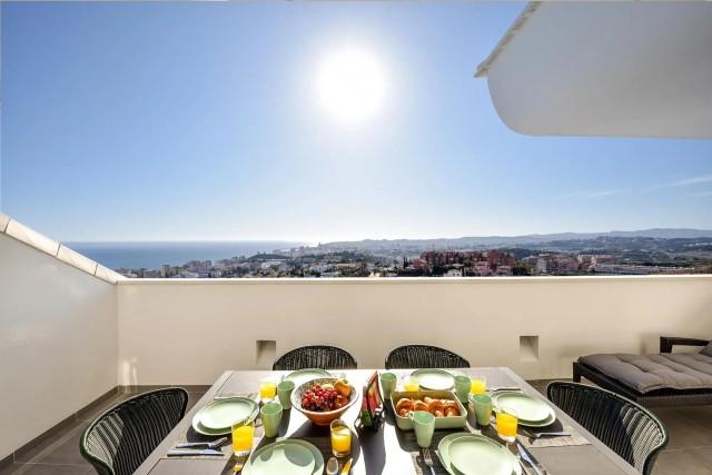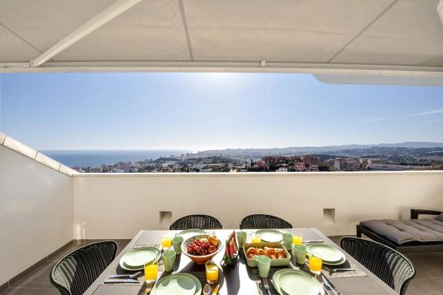 The spacious partly covered terrace faces south-west and offers fantastic views over the sea and Fuengirola coast and the Mijas mountains.