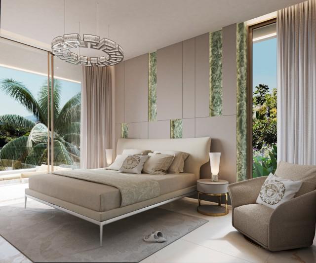 Set within a fully gated private community, each villa occupies an expansive plot of approximately 2,000 m² and is distributed over three levels, all enjoying panoramic sea views. The homes feature five generously proportioned bedrooms, each finished to the highest standards and enriched with bespoke Versace Home detailing.
