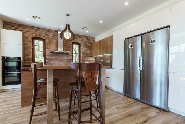 Upstairs, there are four bedrooms with en-suite bathrooms, the master bedroom being particularly noteworthy for its sea views and sloping ceilings. The property also features a large semi-basement, swimming pool, well-maintained garden, solar energy, underfloor heating, private parking and a 24-hour security system, making it an impeccable family home in a prime location.