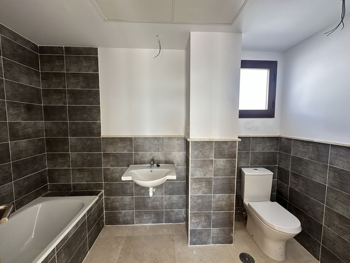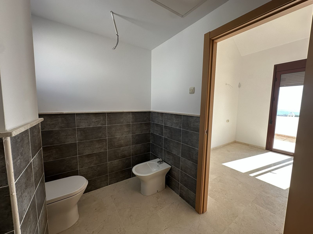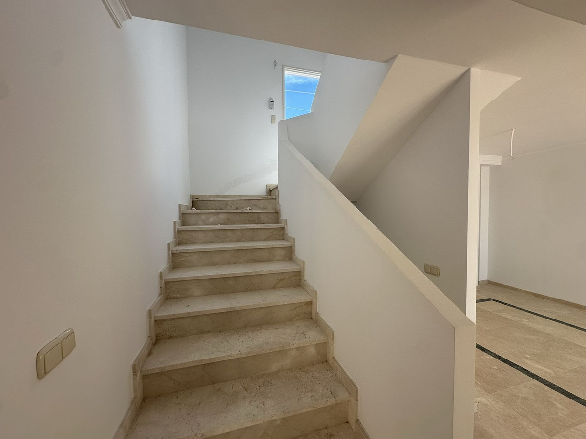The upper floor houses the sleeping area, with an entrance hall, hallway, two bedrooms with built-in wardrobes and two full bathrooms, offering privacy and comfort. It also features a large open terrace, ideal for enjoying the Costa del Sol climate and stunning panoramic views.