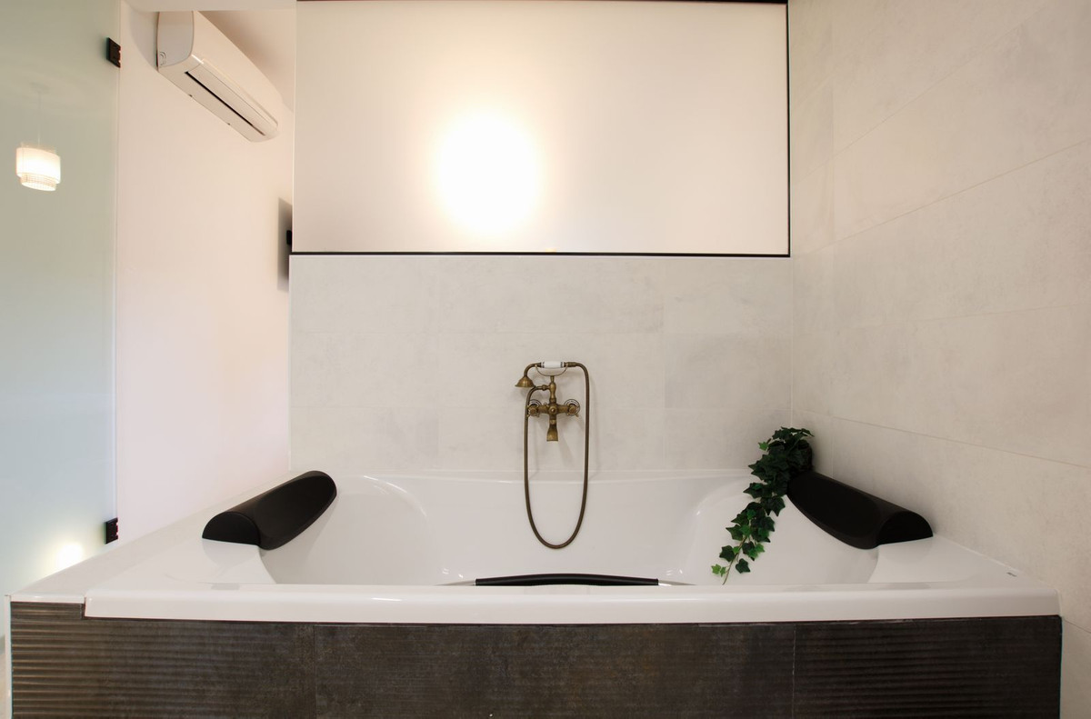 Upon entering, to the left is the open-plan kitchen, equipped with all new appliances, a window, and connected to the dining area where there is a table and 4 chairs.. Next is the spacious living room with an L-shaped sofa, hot/cold air conditioning, and access to the private covered terrace and an open section of the private garden. There are two bedrooms with windows and split-system hot/cold air conditioning. The two original bathrooms have been combined into a single, very large bathroom with a bathtub, a double shower, and a generously sized double sink area. However, it is easy to create two separate bathrooms again with drywall partitions. From the private garden, there is direct access to the communal garden and the communal swimming pool (no steps).