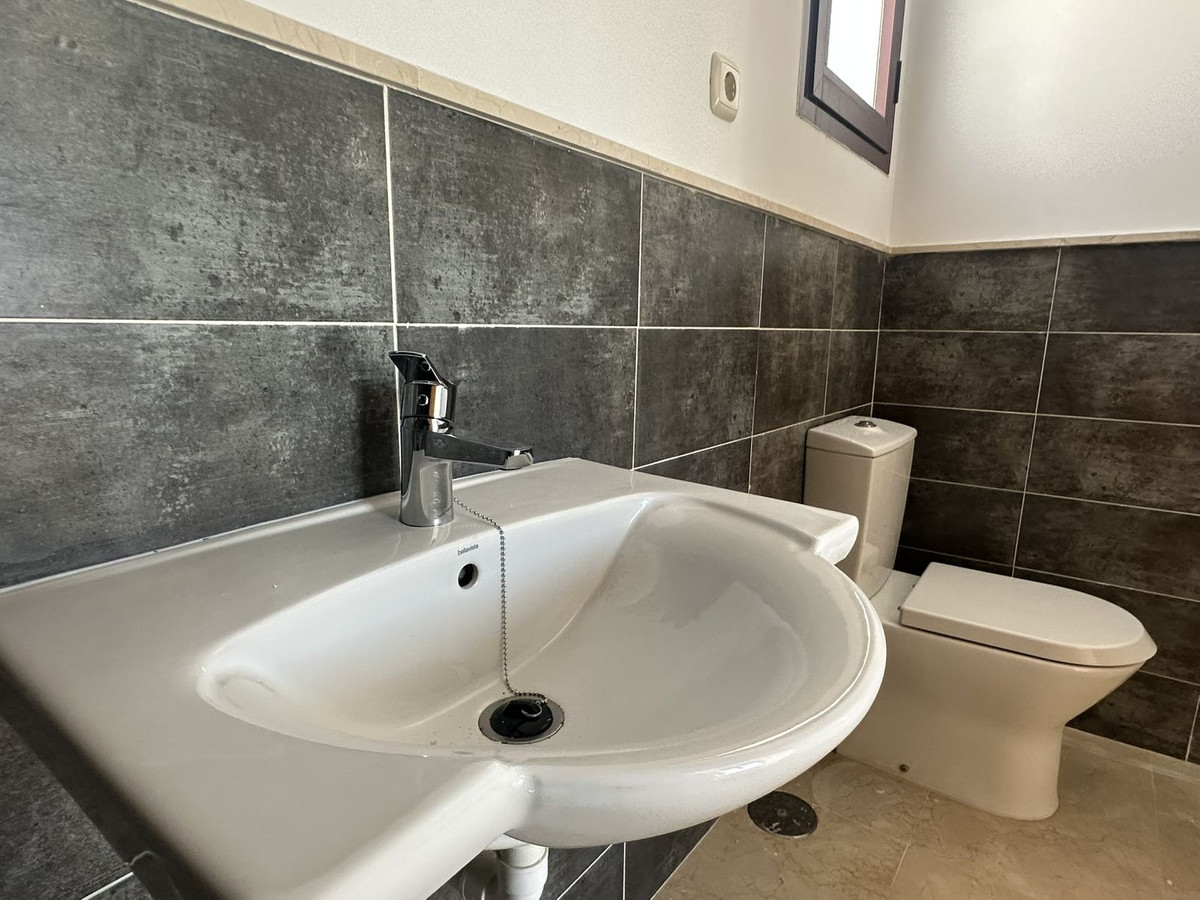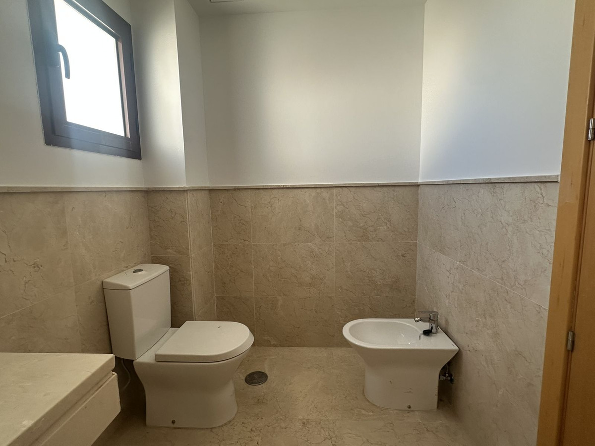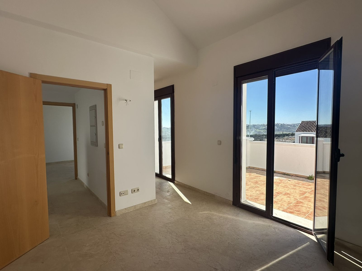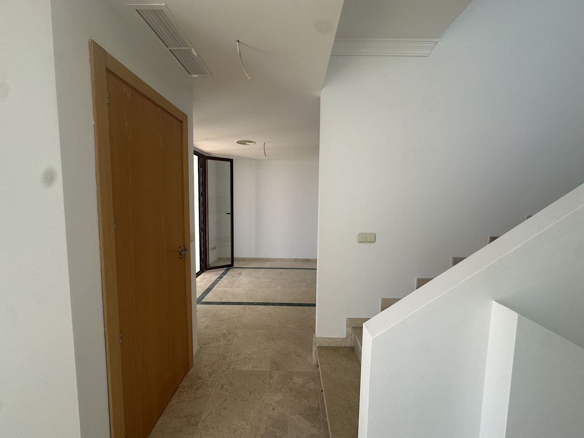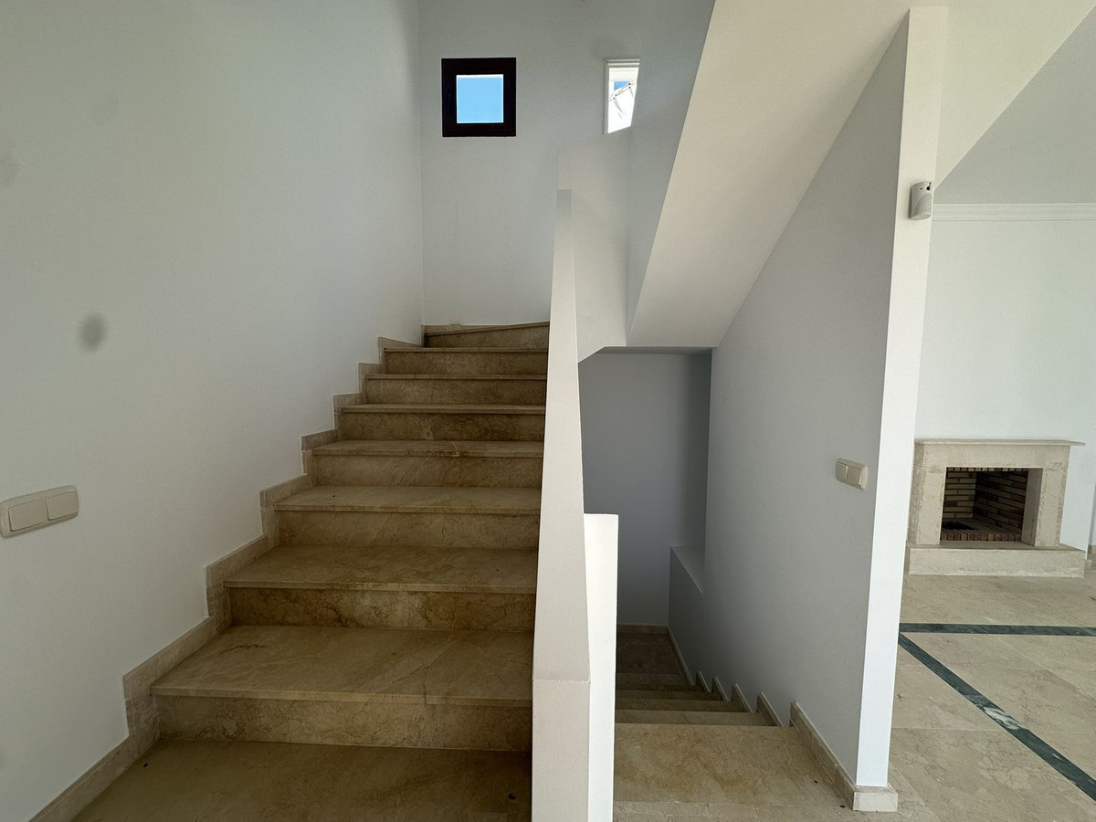 The upper floor houses the sleeping area, with an entrance hall, hallway, two bedrooms with built-in wardrobes and two full bathrooms, offering privacy and comfort. It also features a large open terrace, ideal for enjoying the Costa del Sol climate and stunning panoramic views.