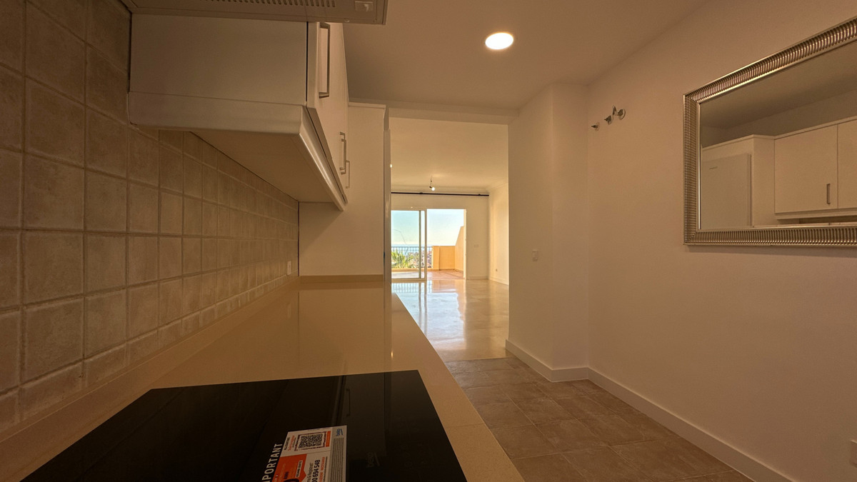 The apartment comprises two well-appointed bedrooms, including a luxurious master with en-suite bathroom, and a further high-quality bathroom. Modern features such as marble floors, underfloor heating in bathrooms, air conditioning, and double glazing ensure comfort and elegance at every turn. The kitchen is both fully fitted and equipped, offering a functional yet stylish space for culinary pursuits, while the spacious living room enjoys natural light and direct terrace access—perfect for entertaining or relaxing admiring the panoramic vista.
