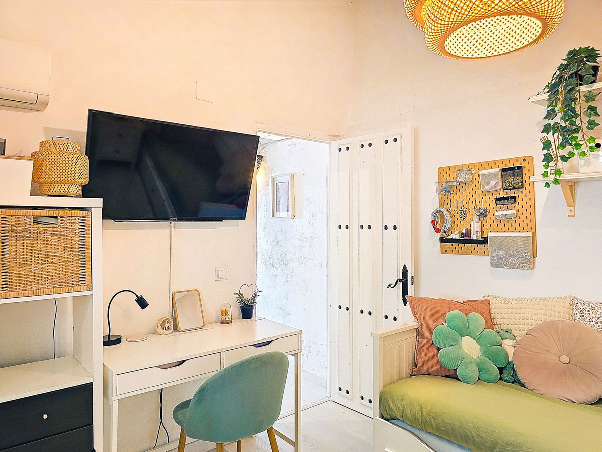 Additional features include air conditioning and heating throughout, wood-burning stoves, double-glazed windows, built-in wardrobes, private parking, a tourist licence, a private water depósito with share in Patamalara, a septic tank, and easy access from the main Torrox to Cómpeta road. The beautifully maintained garden is planted with olive and fruit trees, enhancing the authentic Mediterranean charm.
