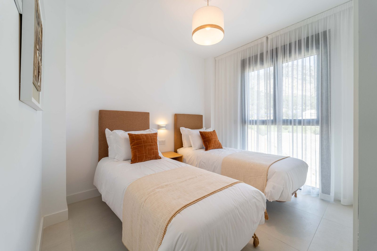 This recently completed property offers 120 m² of interior space plus a spacious south-facing terrace, designed to maximise natural light and open Mediterranean views. The layout combines a bright living-dining area with a contemporary open kitchen and breakfast bar, creating a functional and elegant living space.