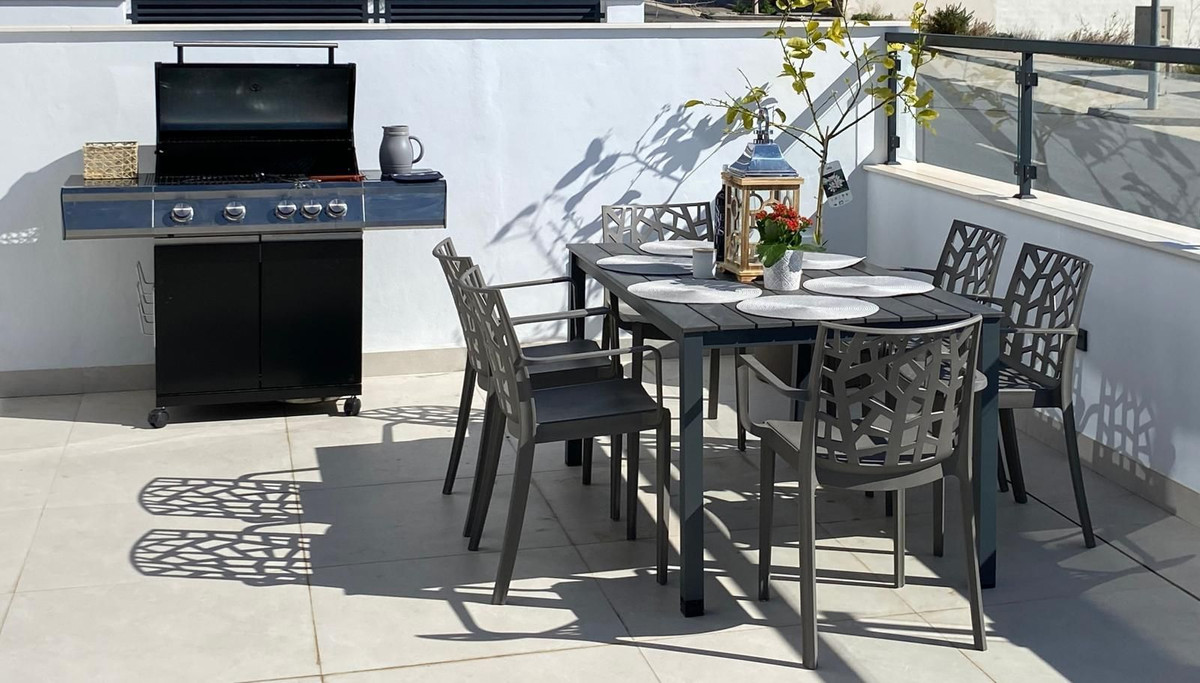 Offering almost 200 m² of built space over three floors, the villa features three generous bedrooms and three contemporary bathrooms. The interior is light-filled and thoughtfully designed, creating open, inviting spaces ideal for everyday living as well as hosting family and friends. At the top, a spacious rooftop terrace provides the perfect setting to soak up the sun and admire unforgettable Mediterranean sunsets.