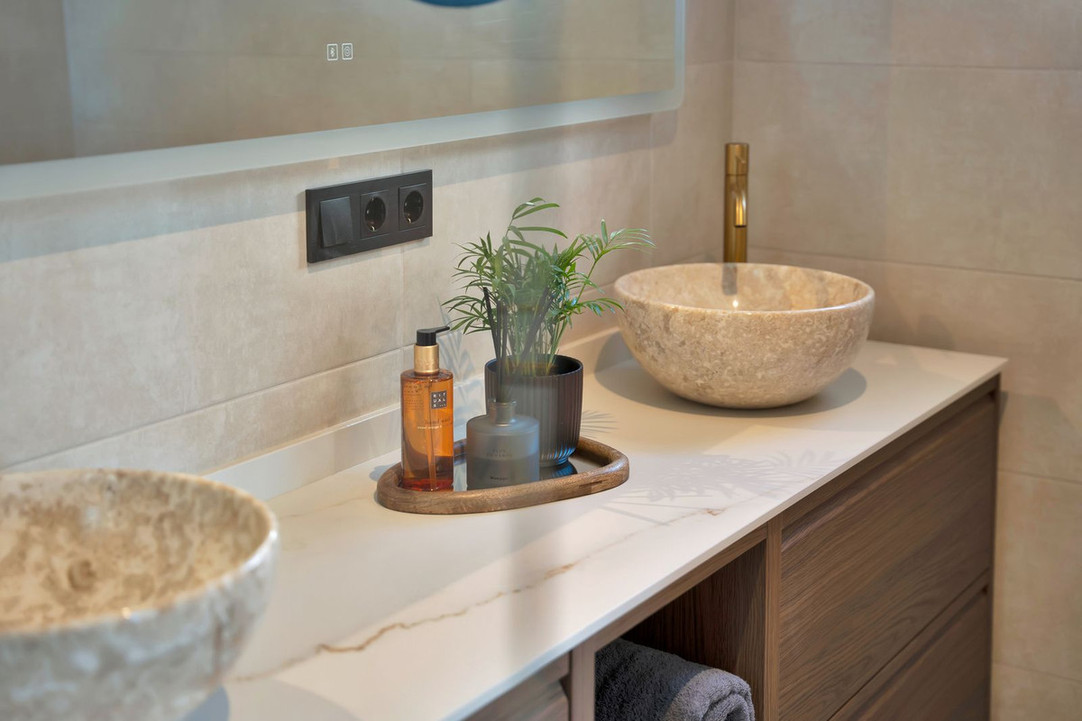 The lower level opens directly onto the private garden area, where you’ll find a jacuzzi and sun loungers — a perfect setting to unwind and enjoy the Costa del Sol lifestyle.