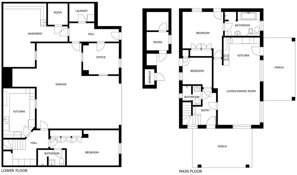 A marble staircase leads to the lower level. Here you will find a guest apartment with an ensuite bathroom and its own spacious kitchen. Next to the guest quarters, passing through the massive garage (55 m²!), is a fourth bedroom, that can also be used as an office. Additionally, this level houses the technical room (with the pool pump) and a storage/workshop area of 30 m². Given the space and the existing plumbing, this floor offers ample possibilities to create 2 or 3 extra guest rooms—ideal for starting a B&B.